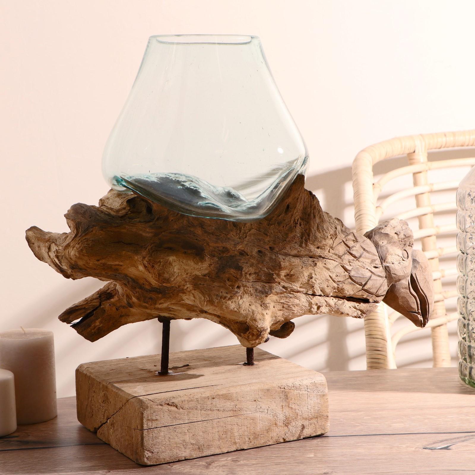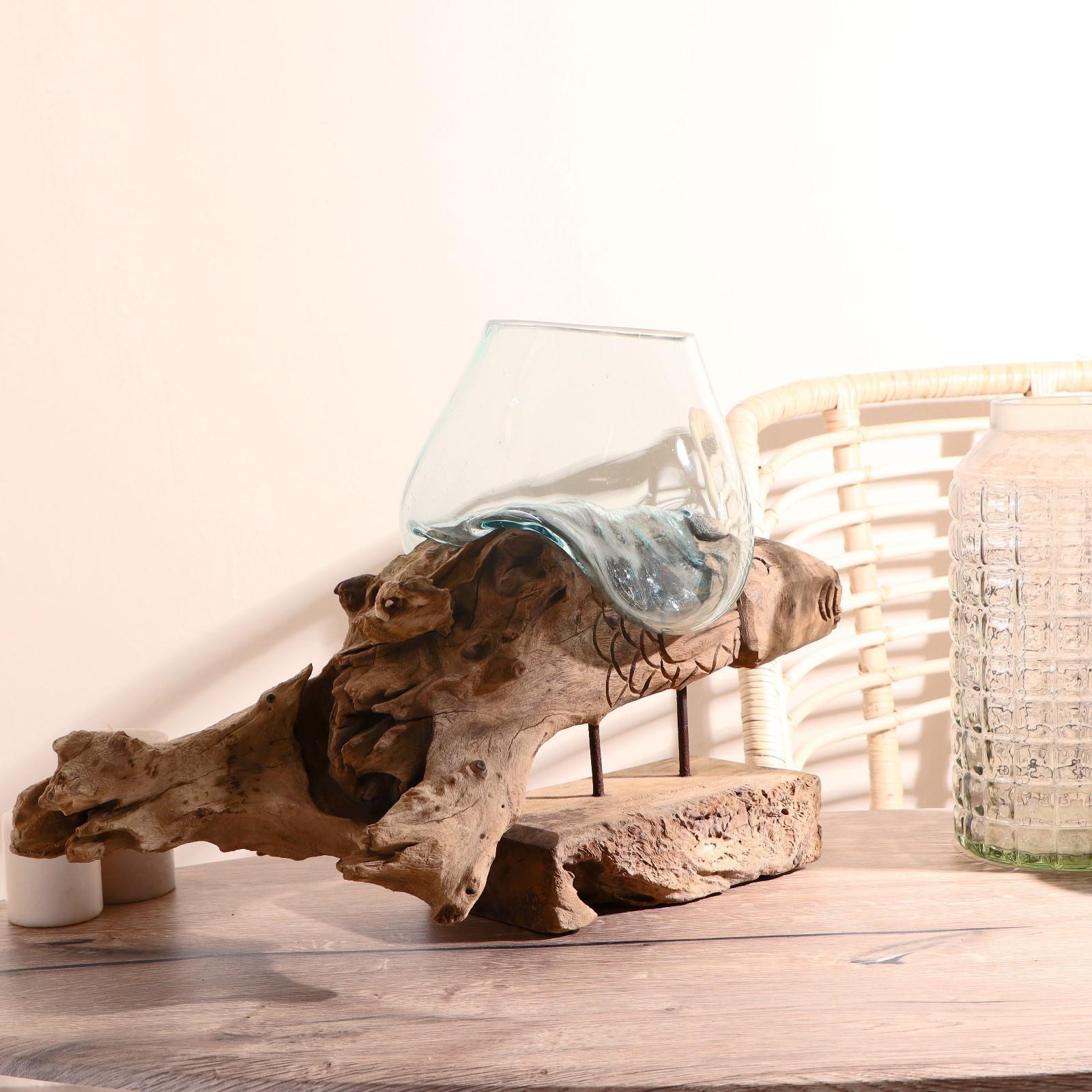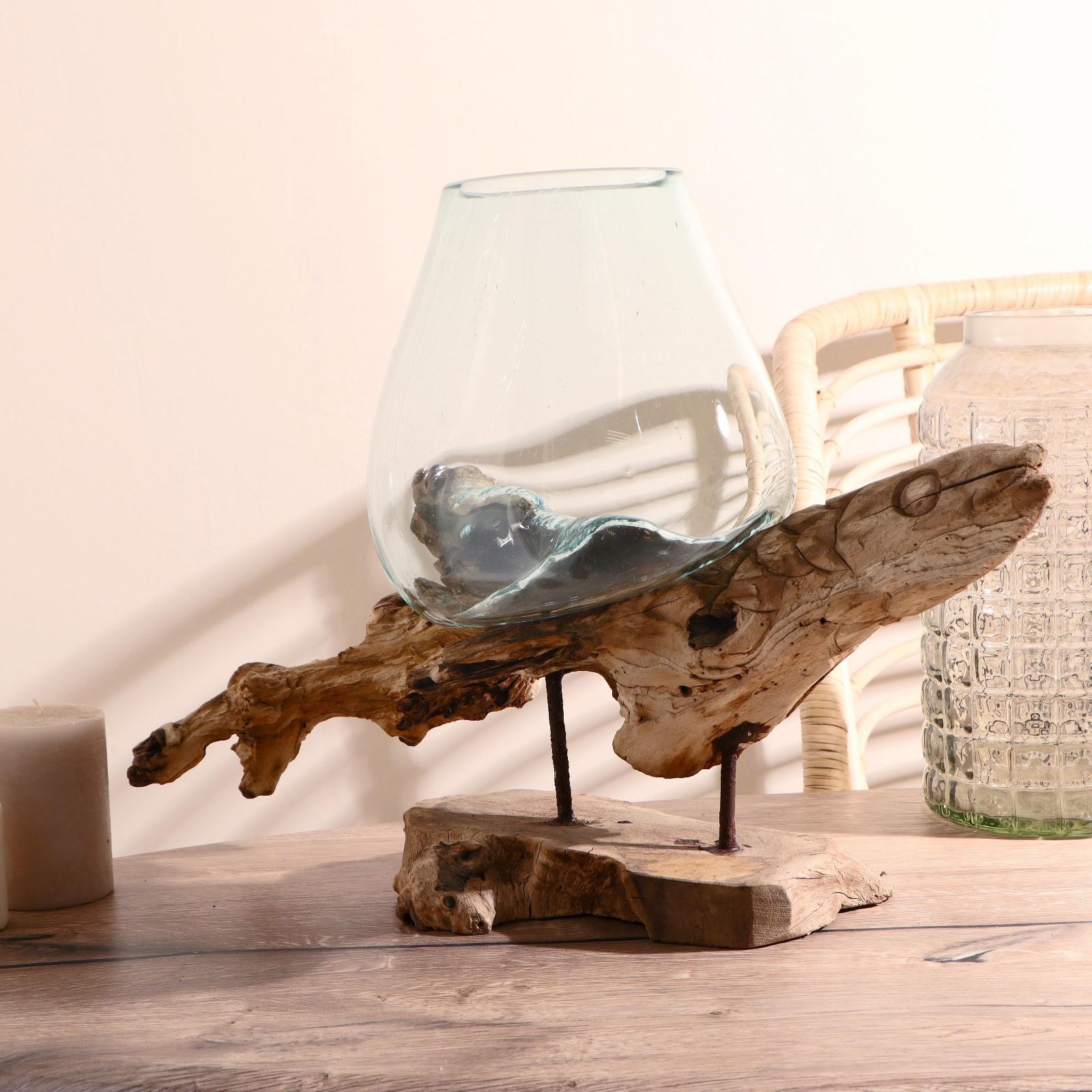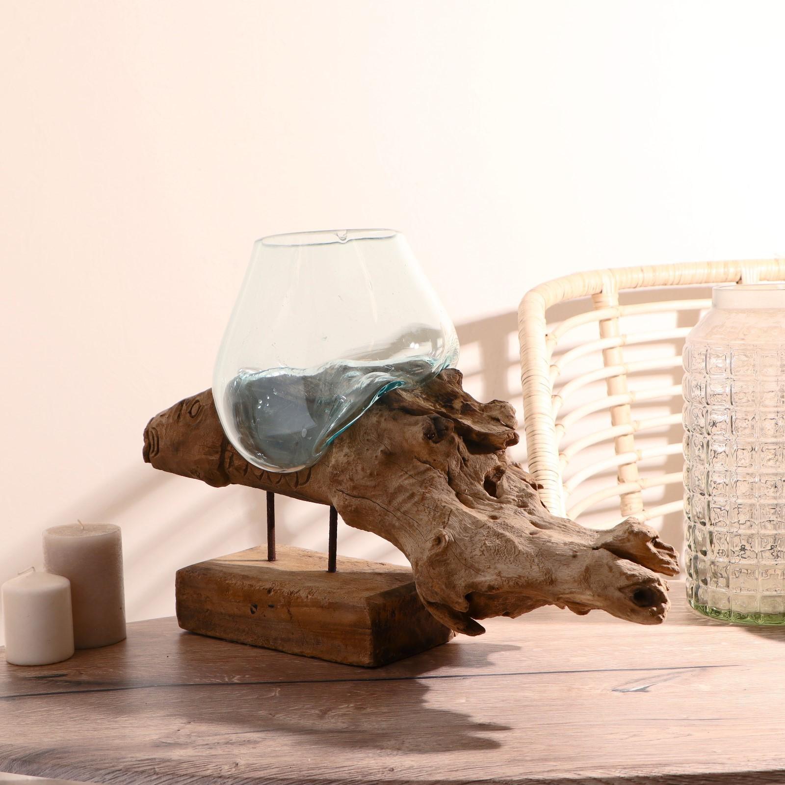 Вазон стекло на дереве "Морские обитатели" МИКС 50х30х25 см