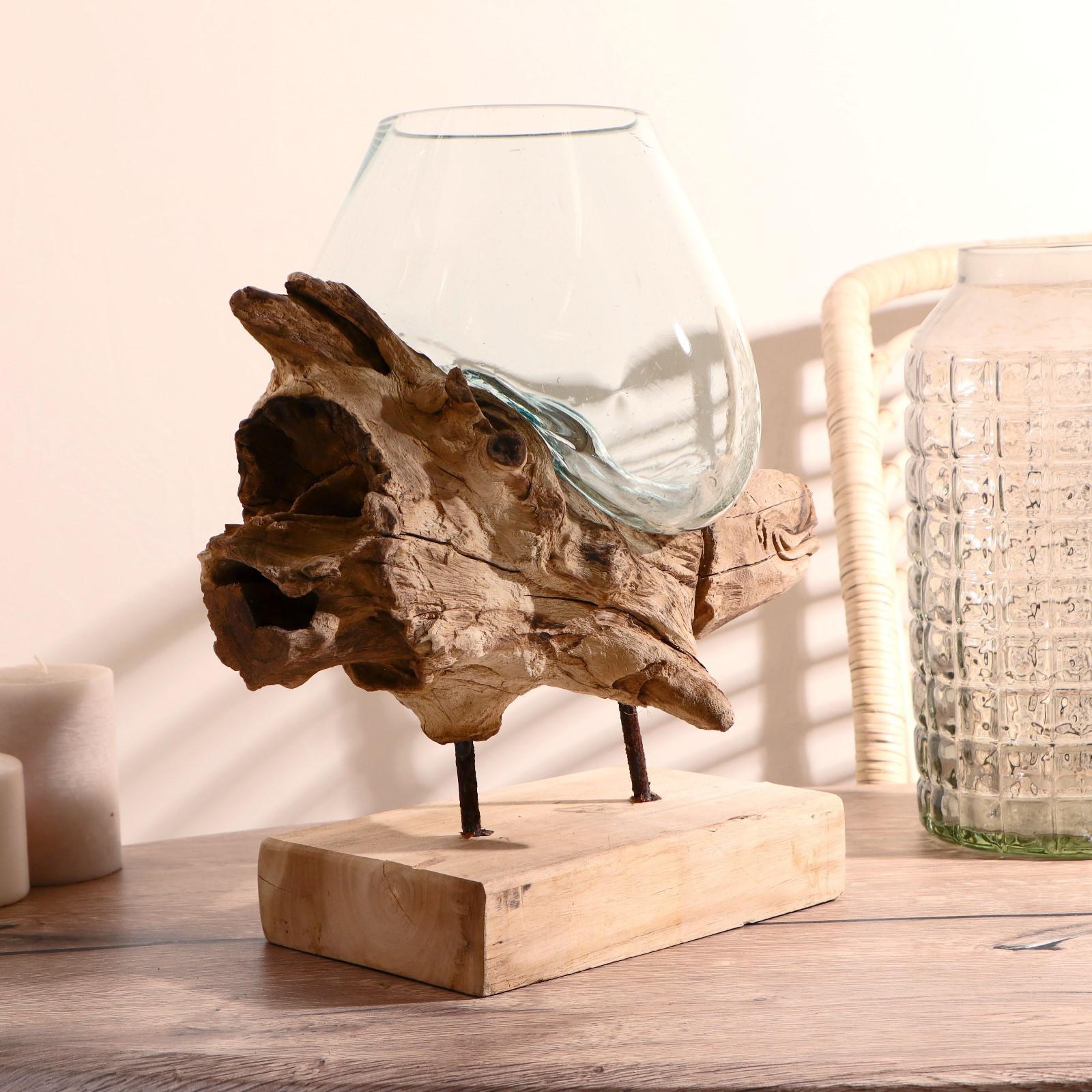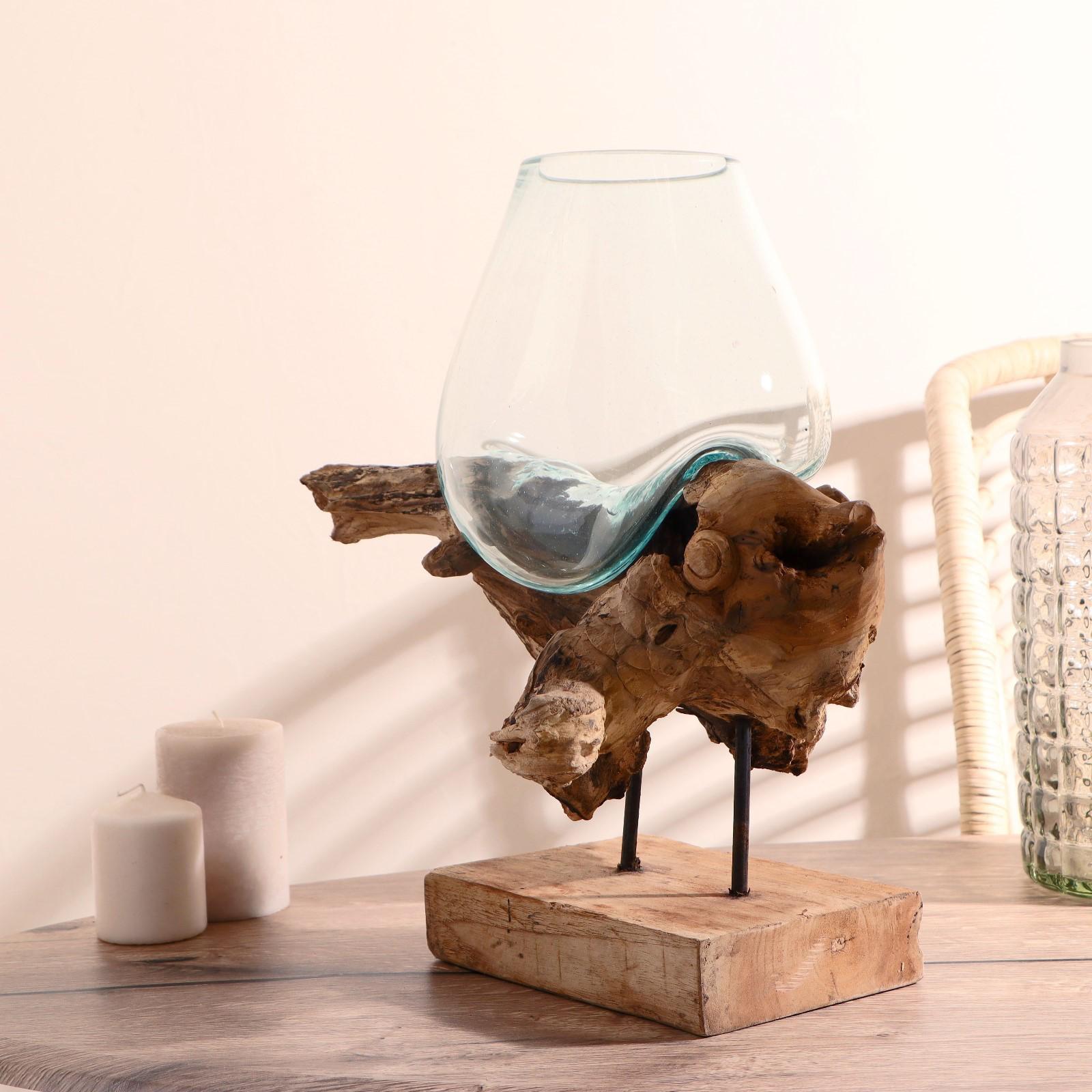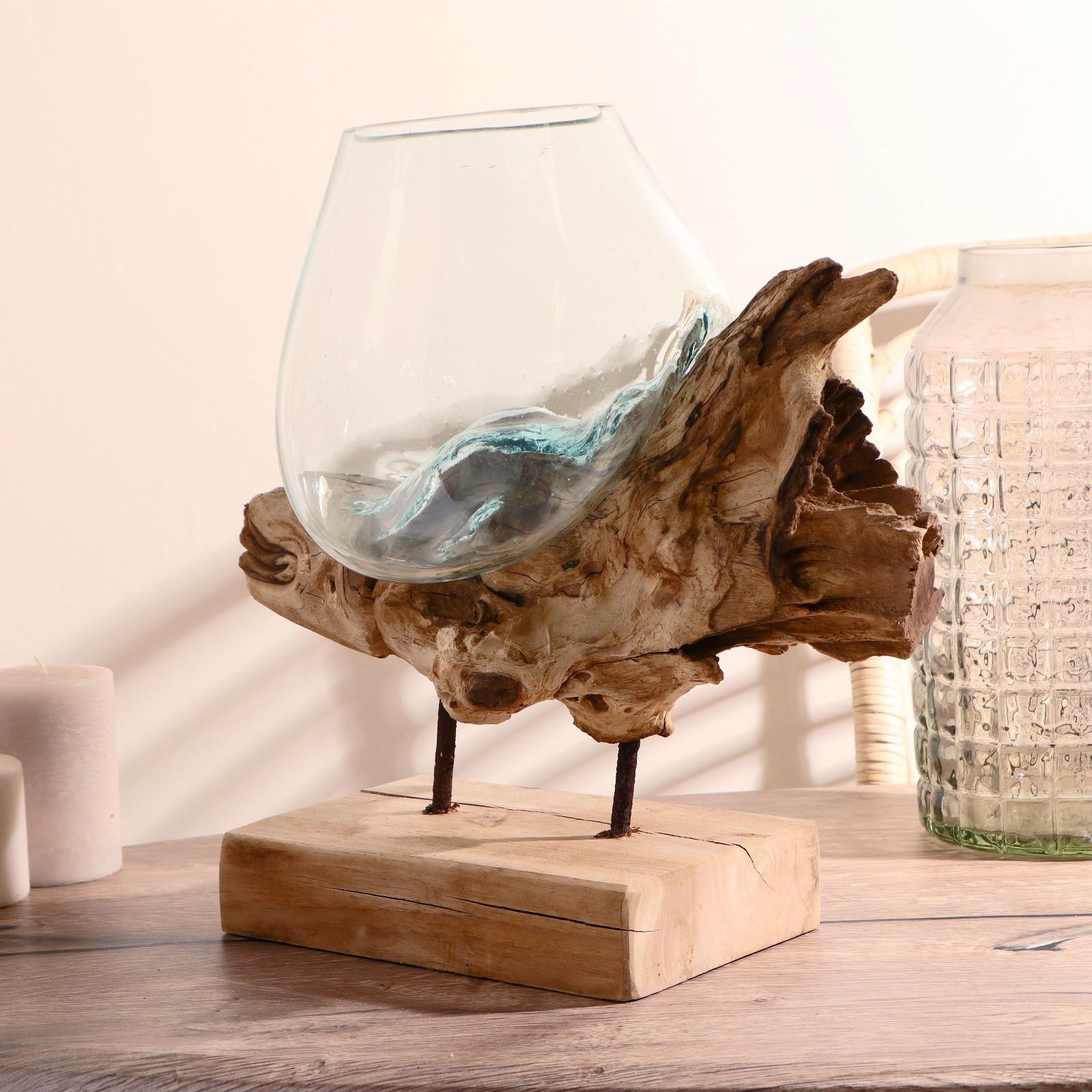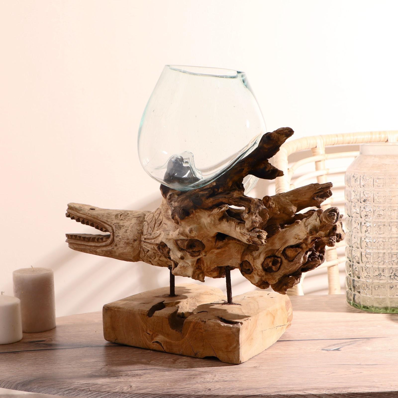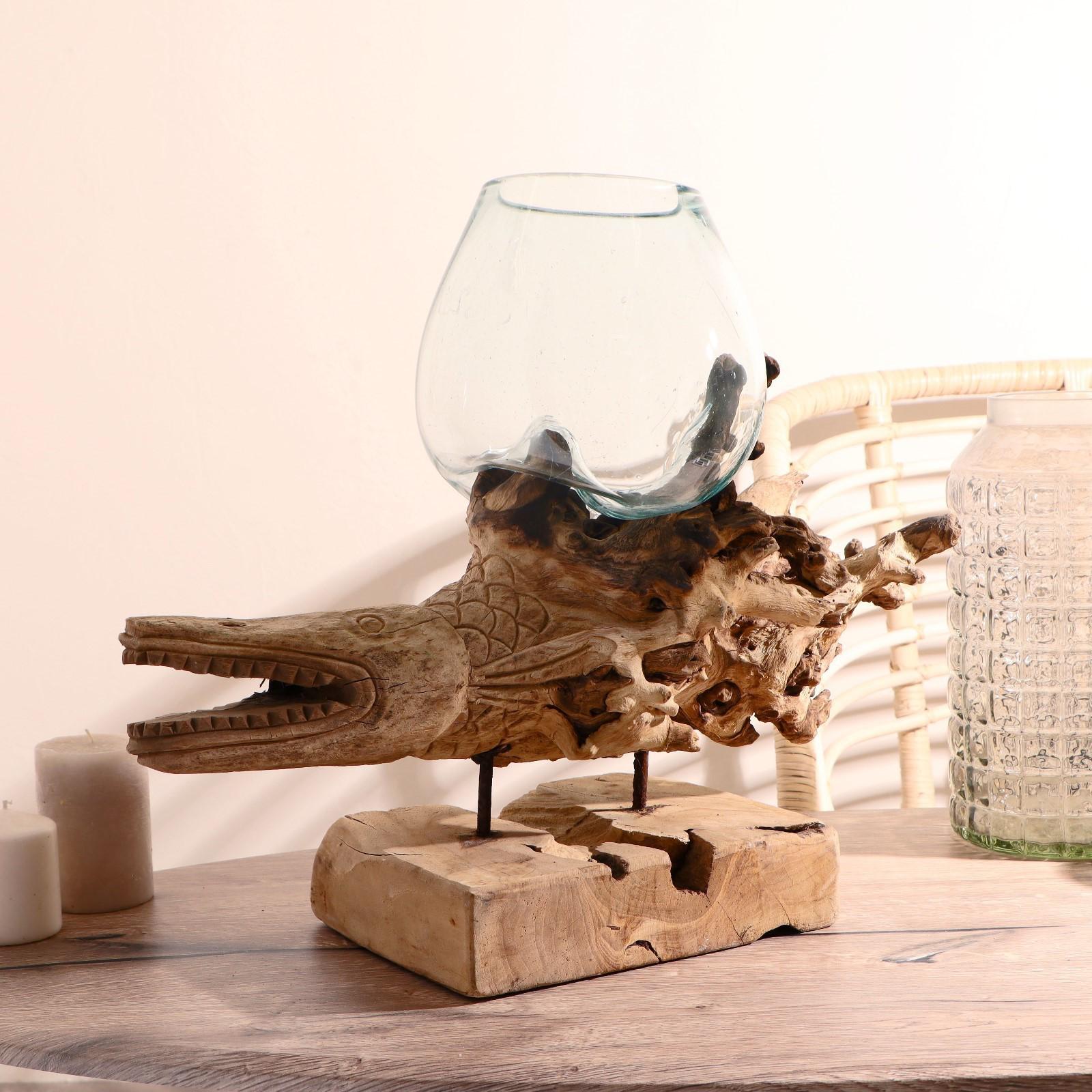 Вазон стекло на дереве "Морские обитатели" МИКС 50х30х25 см
