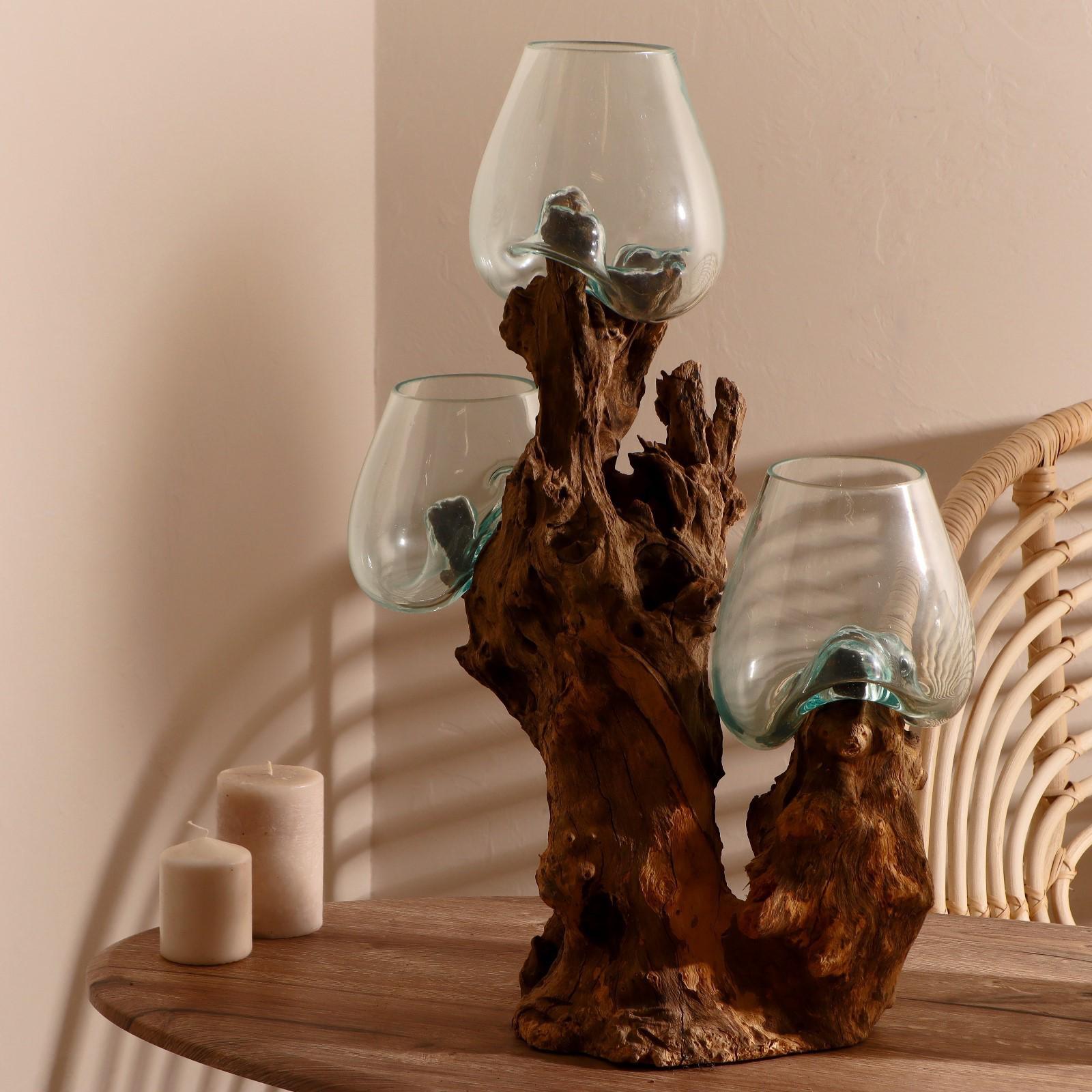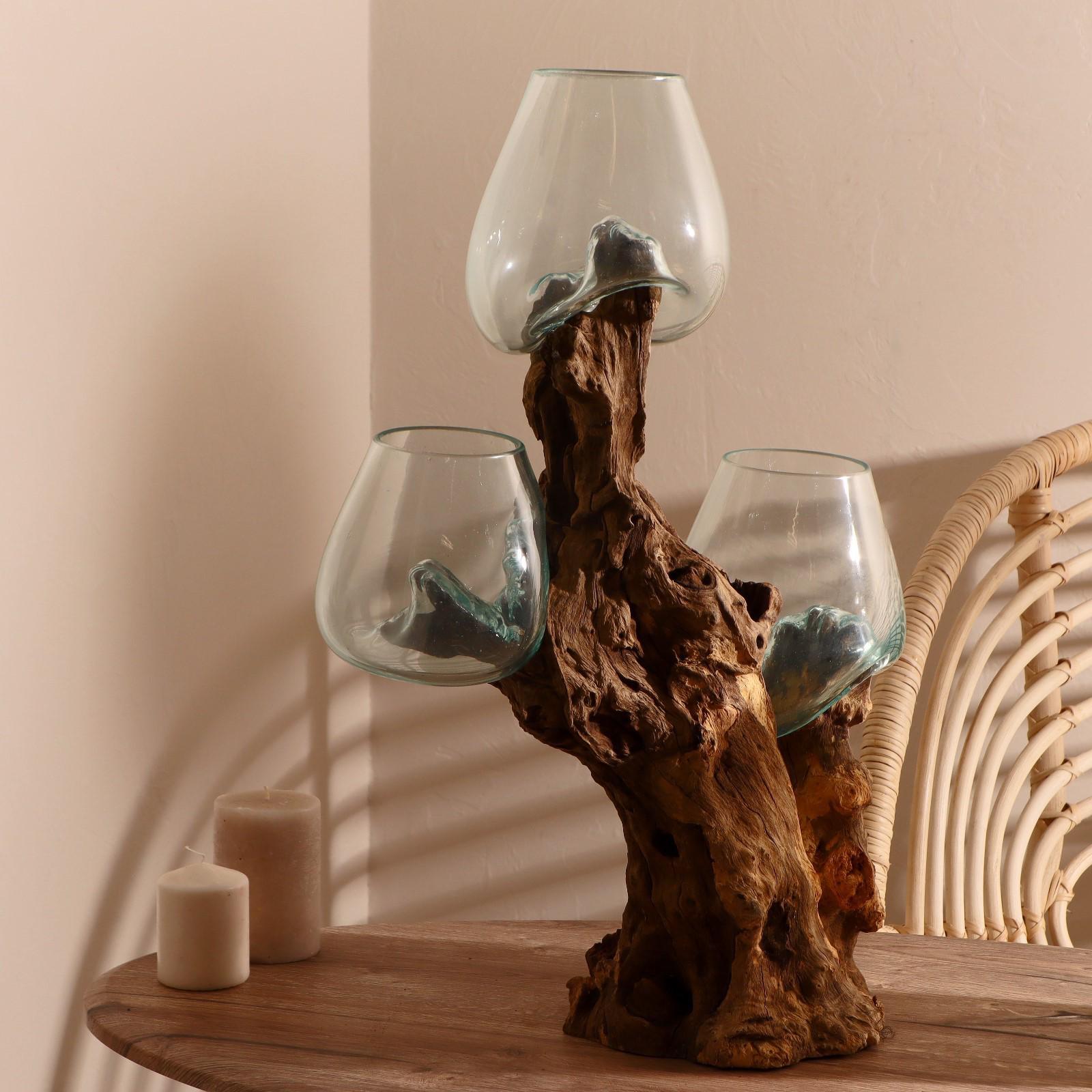 Вазон стекло на коряге "Трио" 45х25х20 см