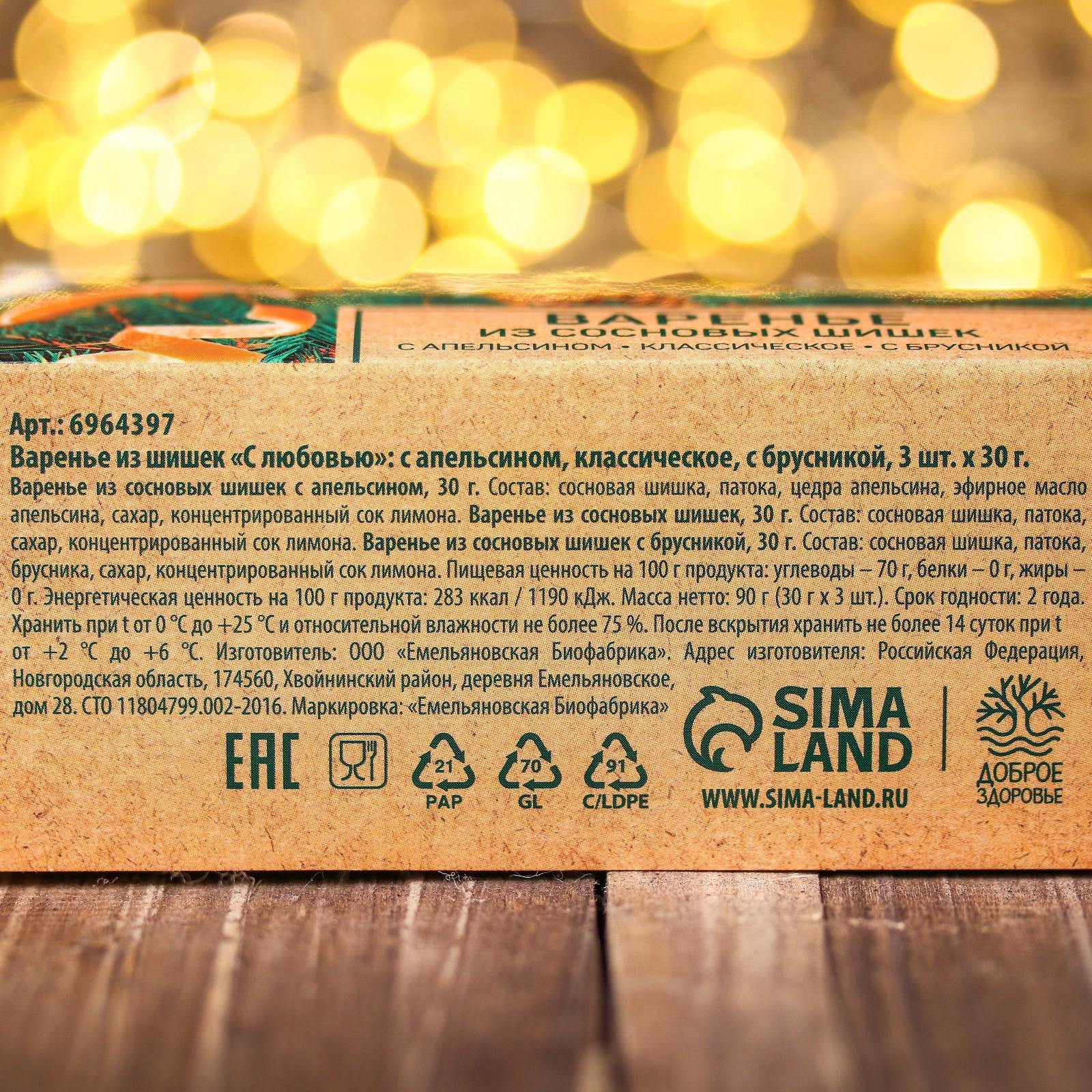 Варенье с шишками «С любовью»: с апельсином, классическое, с брусникой, 3 шт x 30 г.
