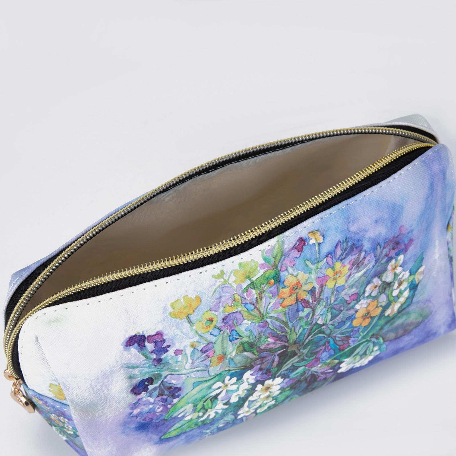 Косметичка дор Цветы, 22*9*12, отд на молнии, подклад, голубой