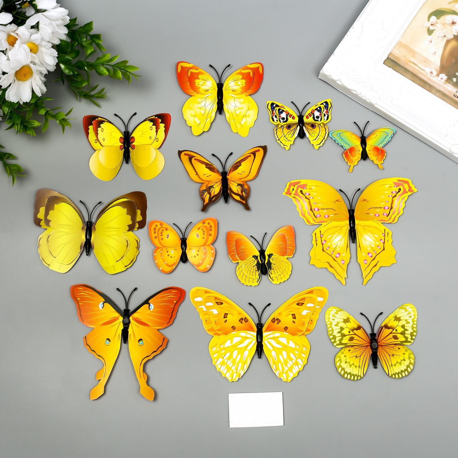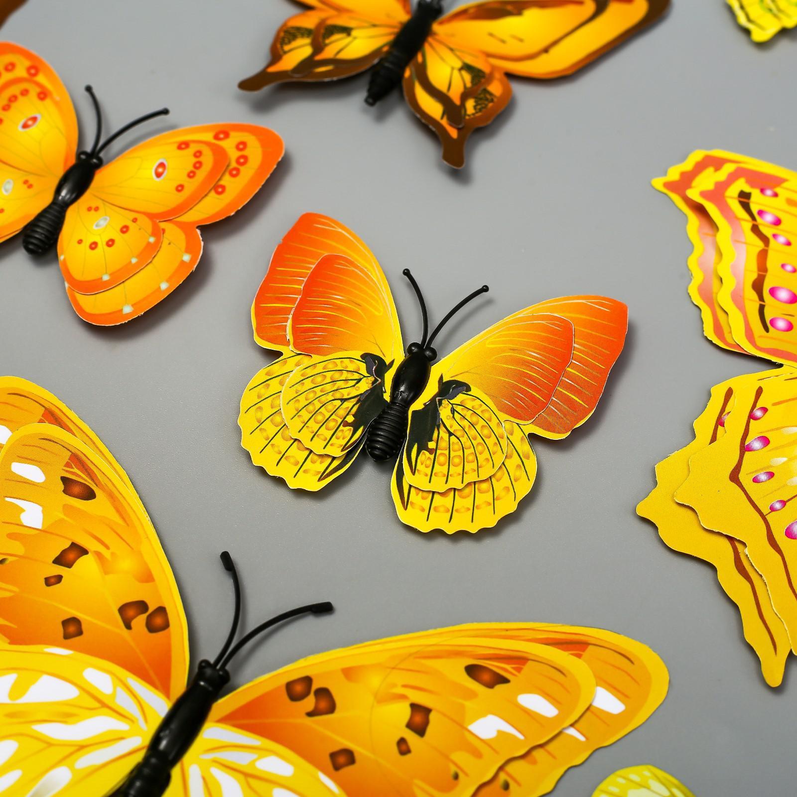 Магнит пластик "Бабочки жёлто-оранжевые" набор 12 шт