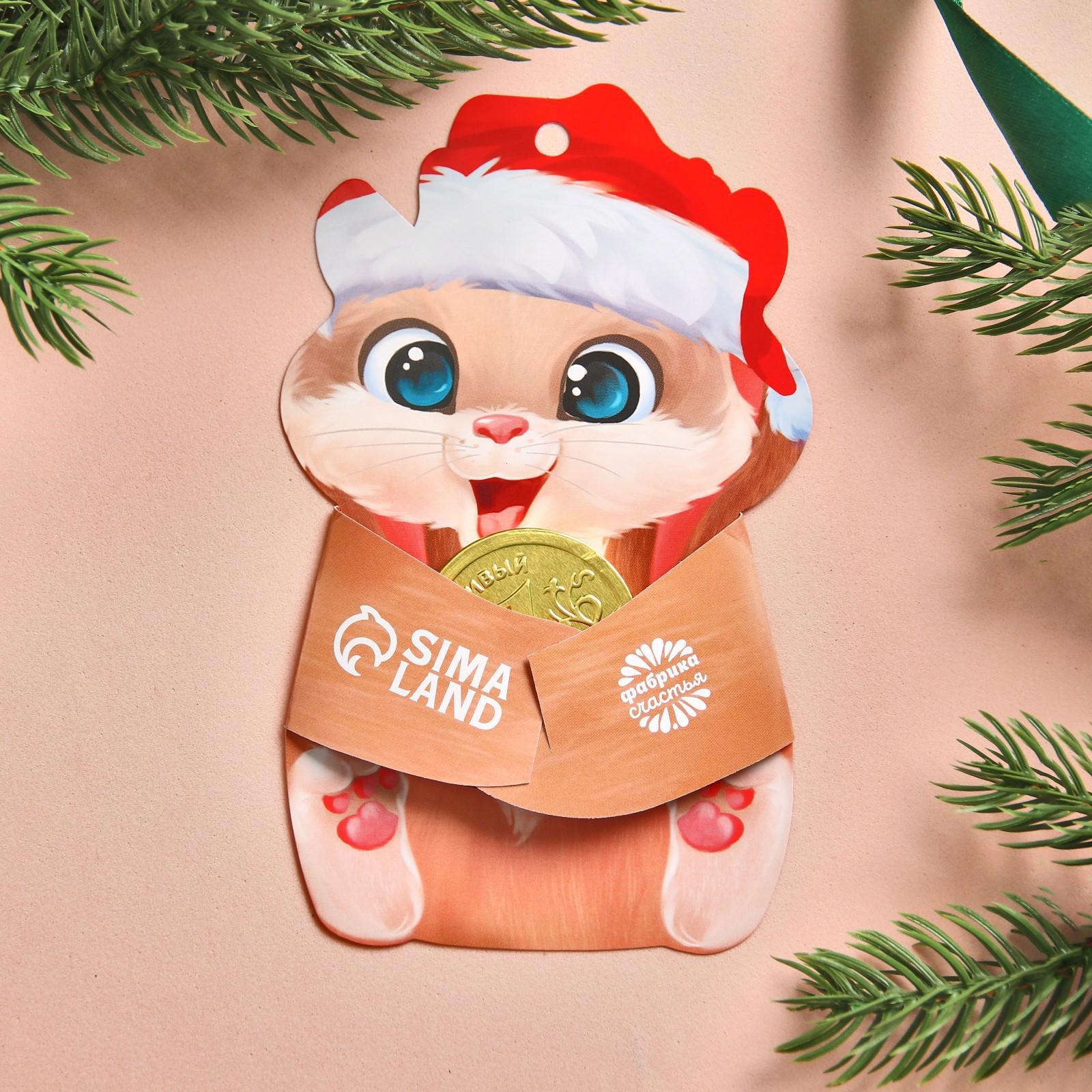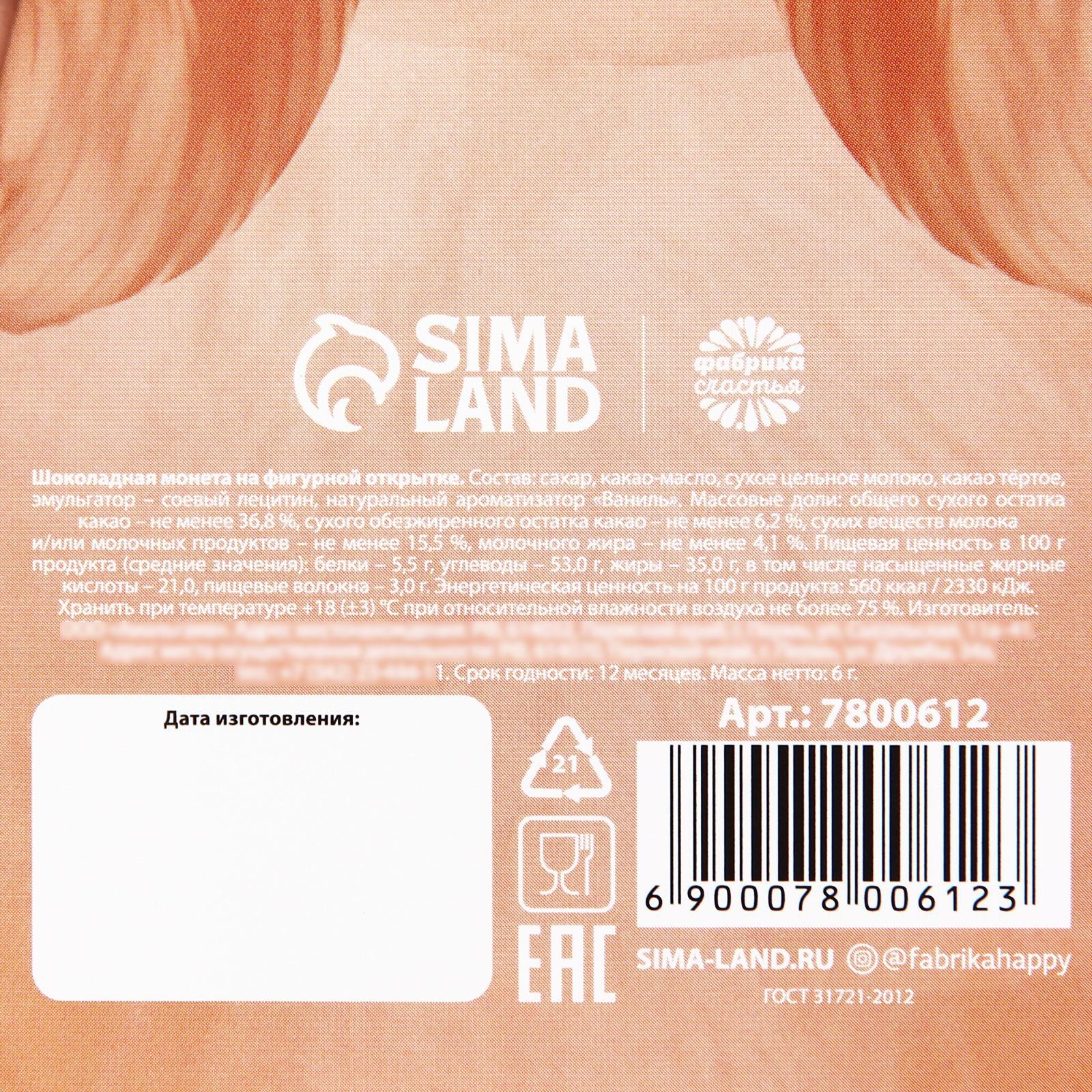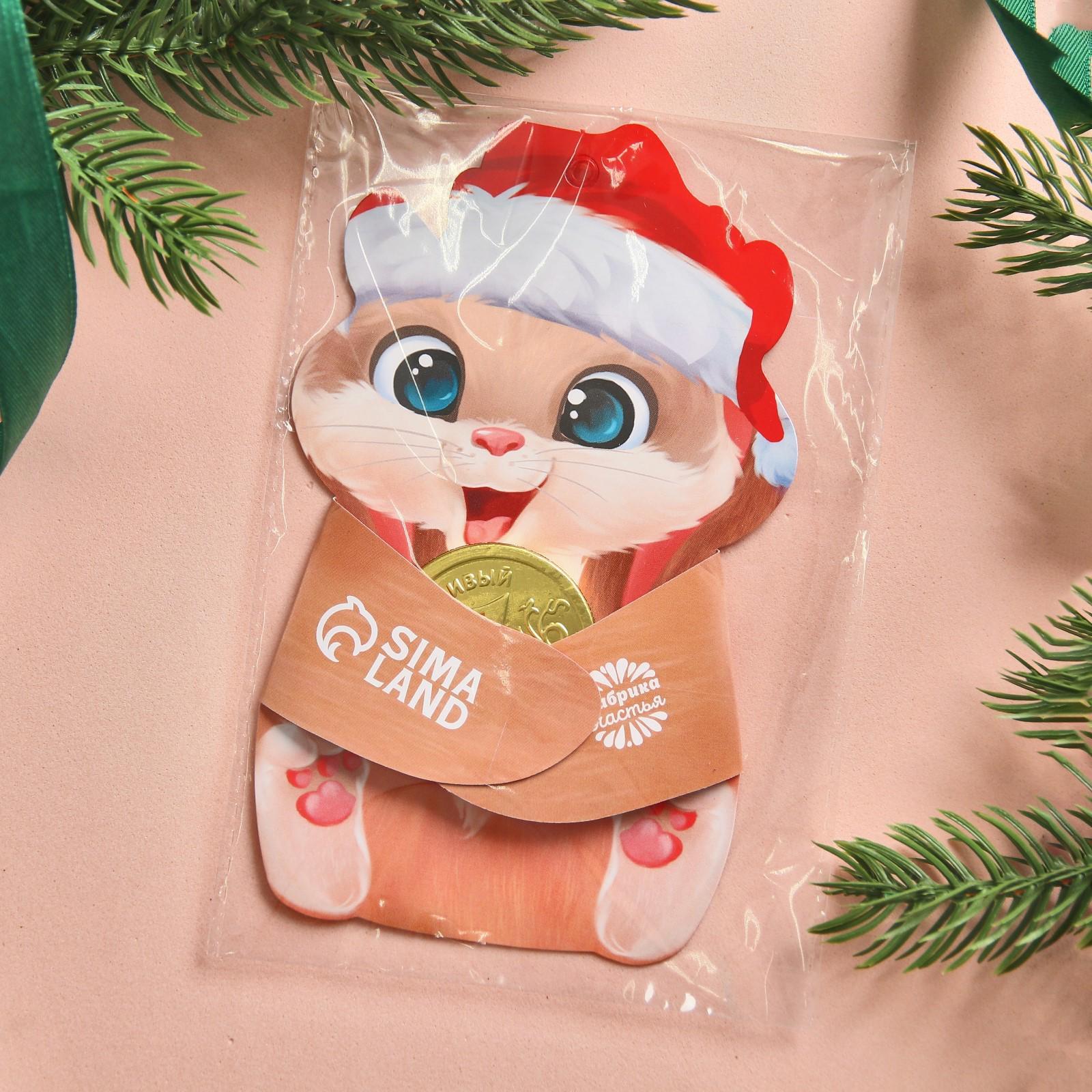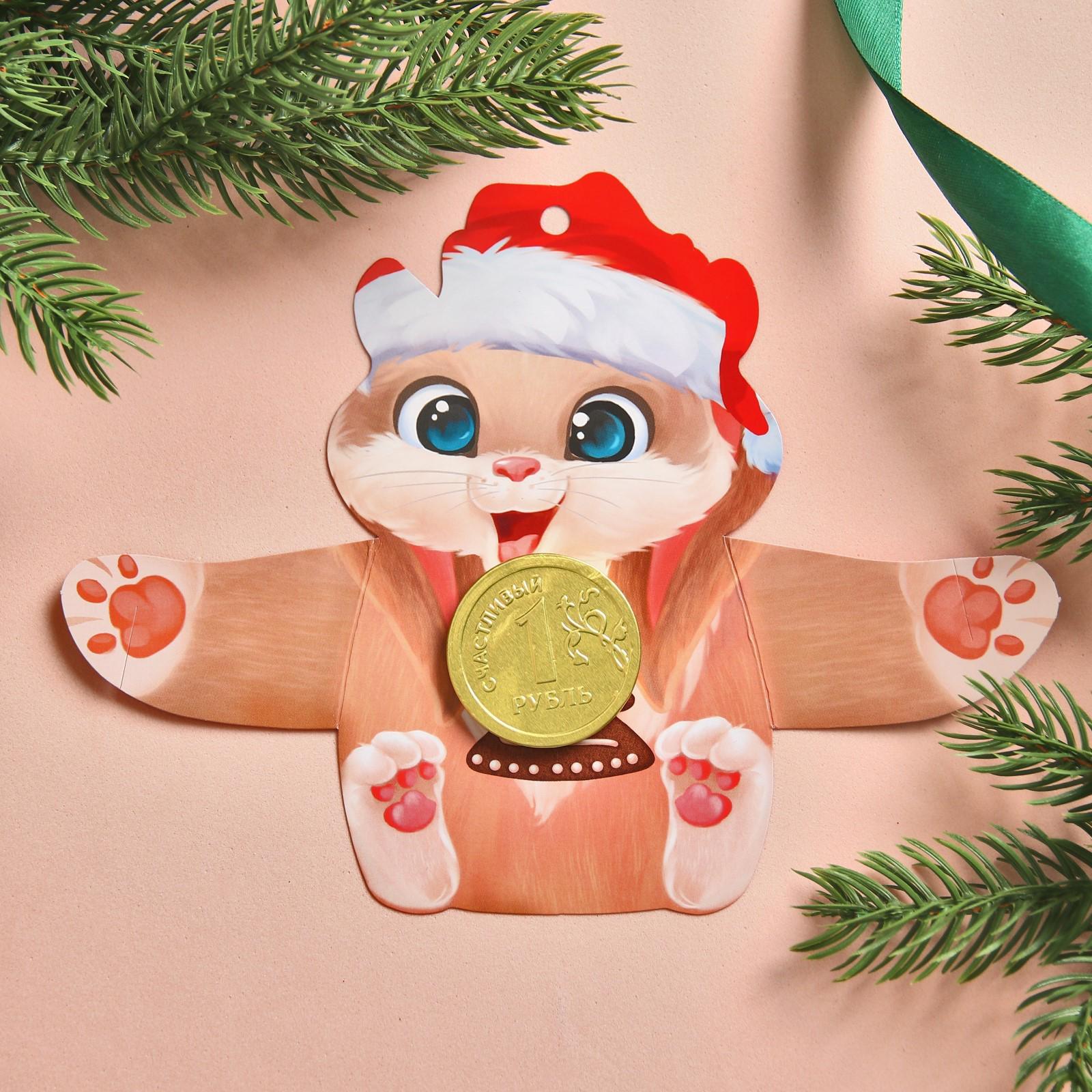 Шоколадная монета на фигурной открытке "Зайка", 6 г.
