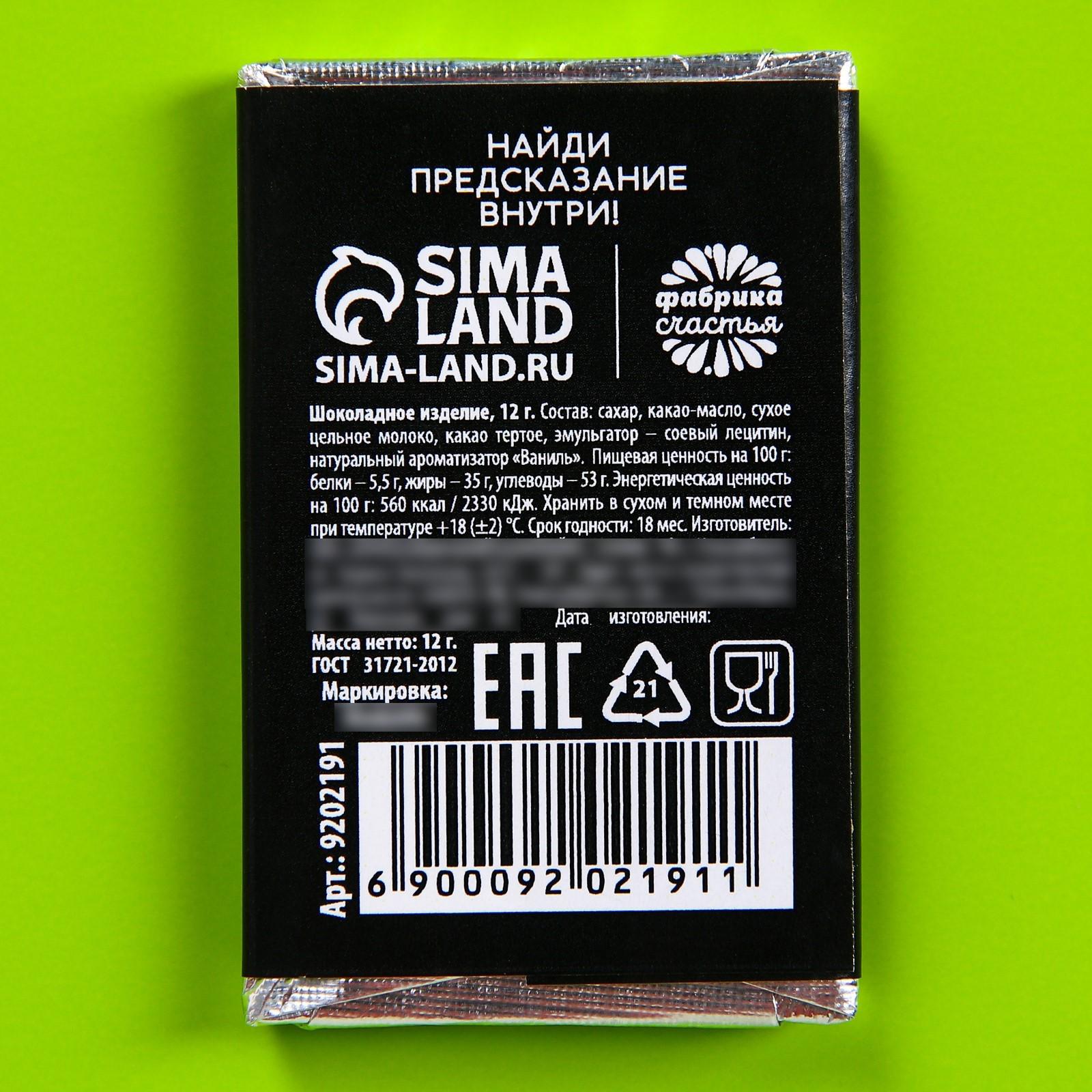 Шоколад молочный «Оберег от нехватки энергии» с предсказанием, 12 г.