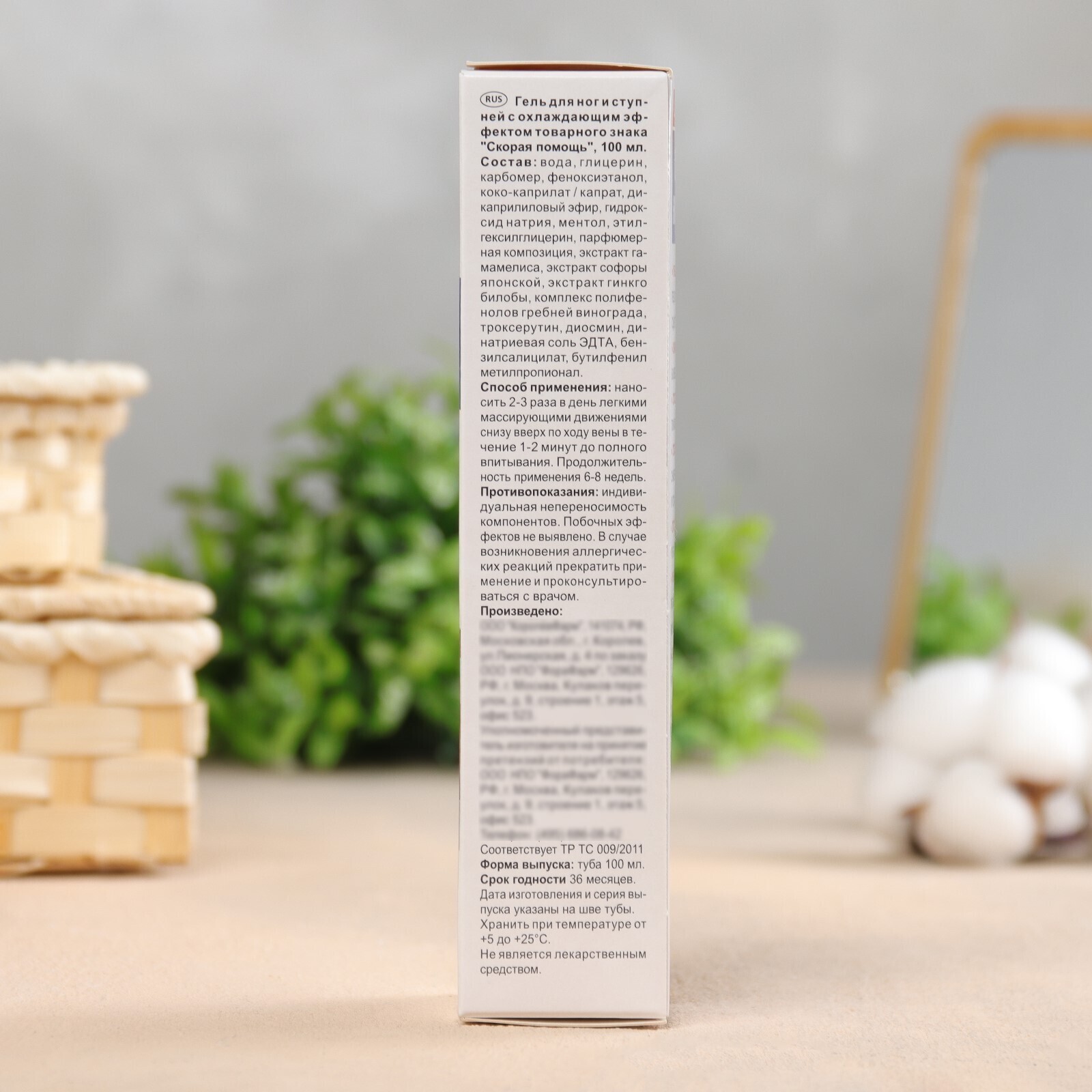 Гель для ног и ступней с охлаждающим эффектом "Скорая помощь" способствует устранению спазмов и судорог мышц ног, обеспечивает комфорт и ежедневный уход за ногами. Основные причины судорог мышц ног- нарушение электролитного баланса(потеря солей кальция, калия, магния),нарушение кровоснабжения, остеохондроз и грыжи дисков. Особенно этому подвержены мышцы голени. Ночные судороги чаще всего указывают на наличие заболеваний вен. Эффективность геля для ног обусловлена входящих в его состав компонентов. Троксерутин обеспечивает комплексное решение проблемы варикоза, укрепляет вены. Виноград красный содержит рекордное количество флавоноидов, которые эффективно укрепляют стенки сосудов и восстанавливают их эластичность. Гинкго билоба улучшает реологические свойства крови, препятствует тромбообразованию, способствует оттоку лимфы. Ментол обеспечивает охлаждающий эффект, снятию усталости и вечерней тяжести. Софора японская снижает давление, предотвращает развитие атеросклероза, варикоза. Диосмин -природный биофлавоноид, который укрепляет стенки сосудов и обладает противовоспалительными свойствами. Гамамелис достаточно эффективен при расширении и деформации вен, уменьшает отечный синдром. Гель положительно влияет на все стадии заболеваний ног и ступней и значительно улучшает качество жизни!
