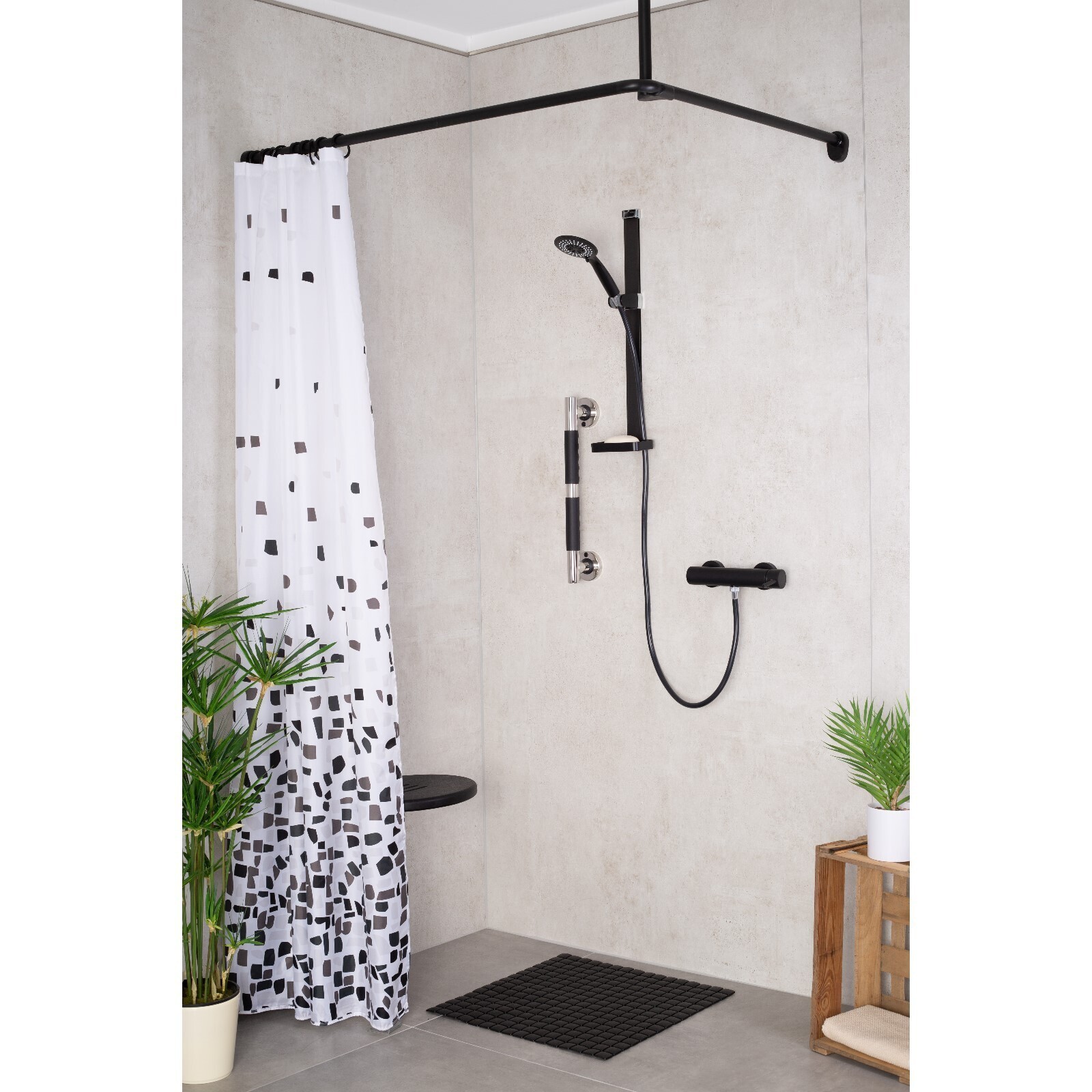 Современный карниз Ridder прочен, надёжен и долговечен. Металл не царапается и не подвергается коррозии, благодаря чему может быть использован в помещениях с высокой влажностью. Диаметр штанги составляет 25 мм.