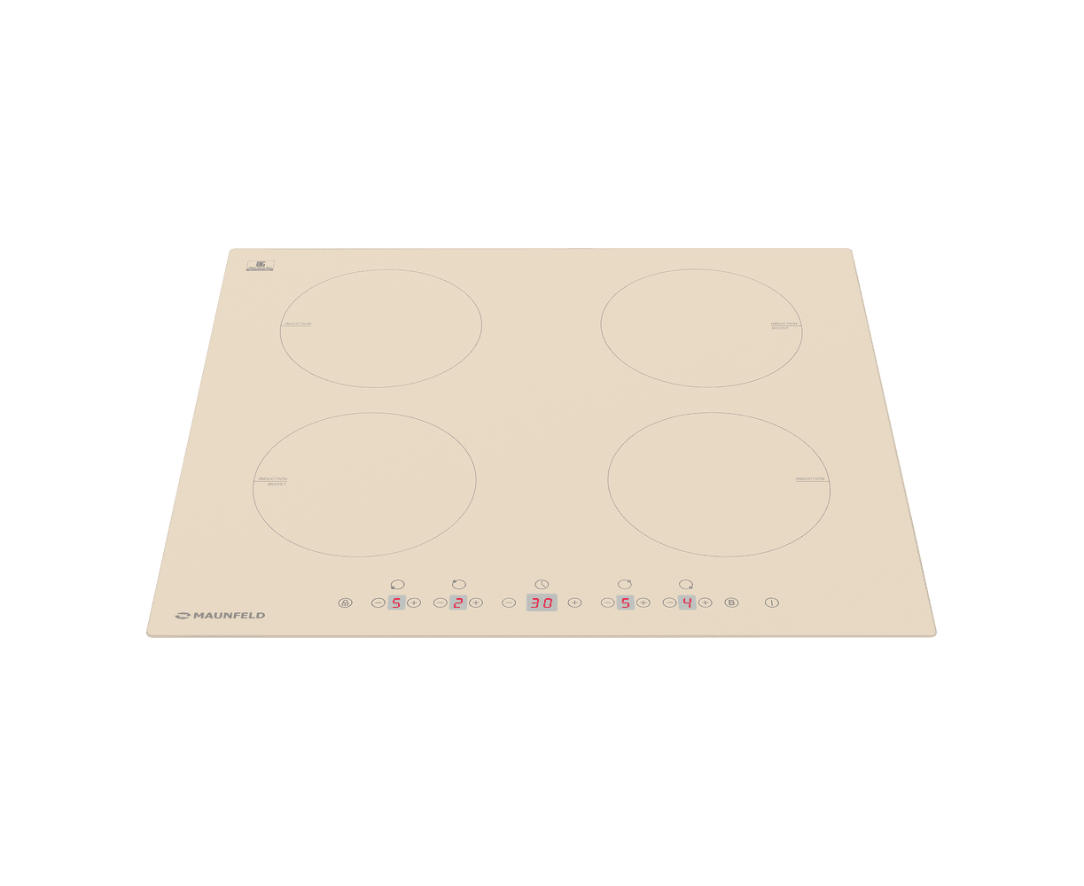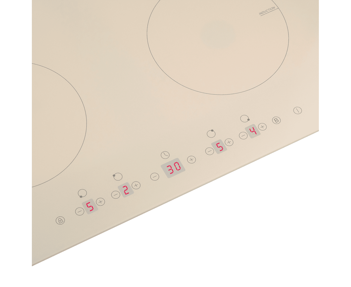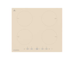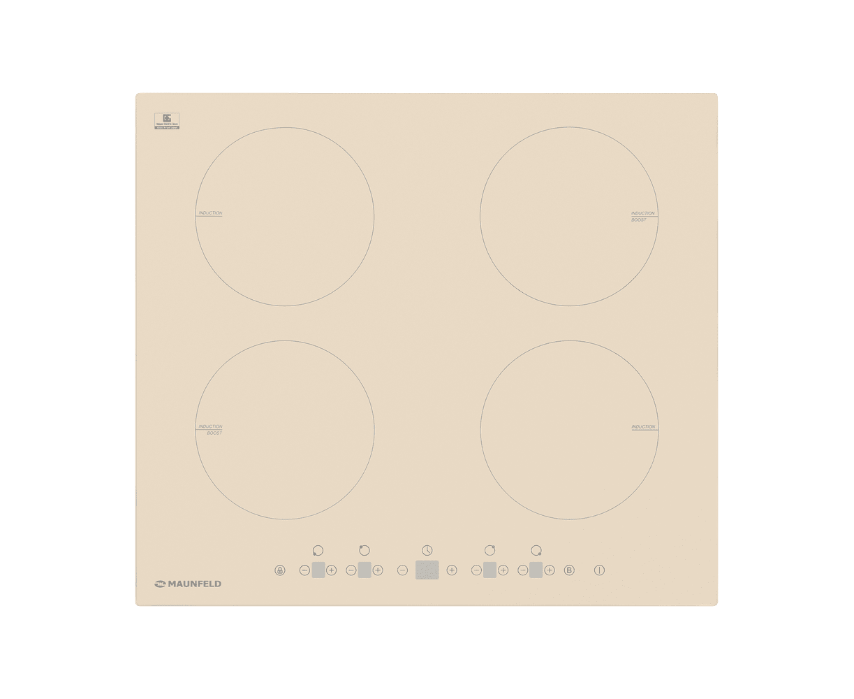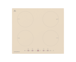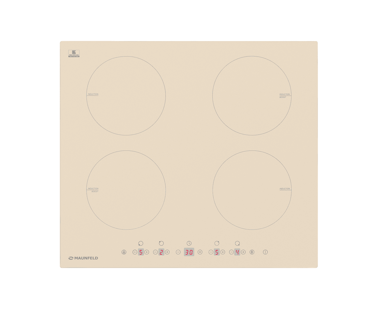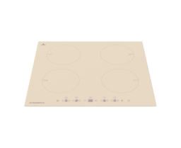 Индукционная варочная панель шириной 59 см выполнена из жаропрочного стекла японской фирмы Nippon Electric Glass бежевого цвета. Стеклокерамика не только отличается высокими техническими показателями, но и легко очищается.Диаметр каждой из 4-х конфорок составляет 180 мм. Мощность: 2000, 2000, 1500, 1500 Вт (из них 2 бустера 2600 Вт).Сенсорное управление дает возможность: выбрать уровень мощности для каждой конфорки (9 уровней)заблокировать панель от детейвыставить таймер (для отключения одной или нескольких варочных зон по истечении заданного времени) Предусмотрены следующие функции, упрощающие эксплуатацию плиты: Индикатор остаточного тепла укажет, какая из варочных зон ещё горячая.Детектор диаметра посуды экономит электроэнергию, нагревая только необходимую полезную поверхность конфорки.Автоматическое отключение в случае перегрева, долгого простоя работающей конфорки и при намокании поверхности варочной панели. Для приготовления на индукционной варочной панели пригодна посуда из ферромагнитного материала с ровными краями и плоским дном.