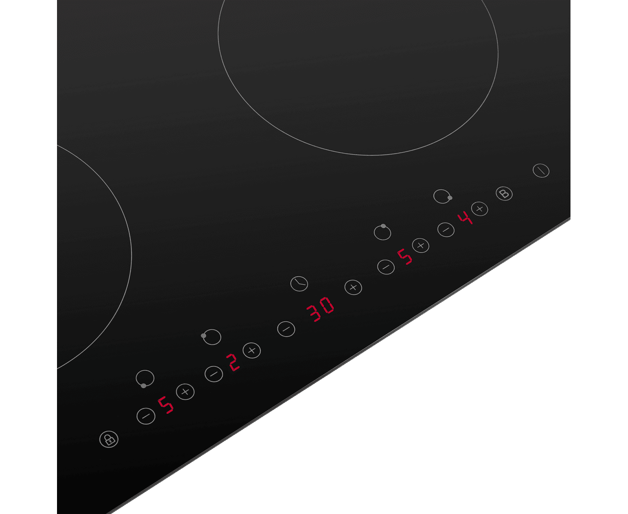 Индукционная варочная панель шириной 59 см выполнена из жаропрочного стекла черного цвета. Стеклокерамика не только отличается высокими показателями качества, но и легко очищается.
