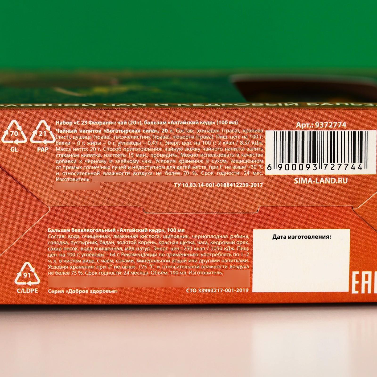 Набор «С 23 февраля»: чай (20 г), бальзам "Алтайский Кедр" (100 мл)
