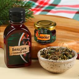 Набор «Будьте здоровы»: чай 20 г., варенье из сосновых шишек 30 г., бальзам 100 мл.