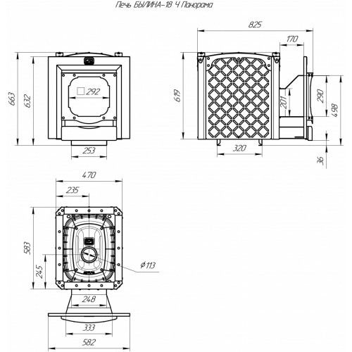 Печь для бани Теплодар Былина-18Ч Панорама (1.2) (без дверцы)
