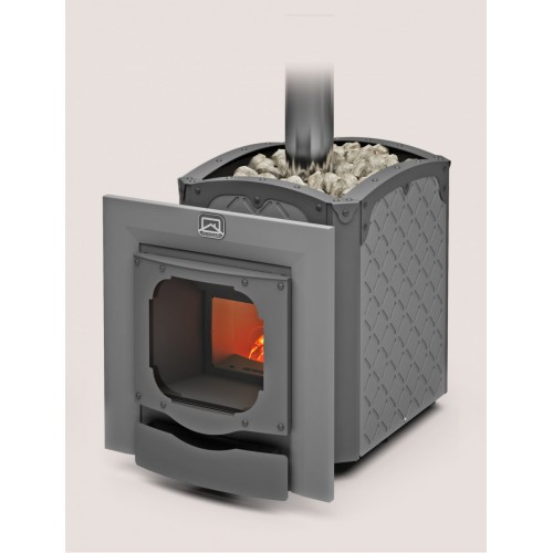 Еще одной отличительной особенностью печи, без сомнений, стала максимально возможная площадь теплообмена за счет большого количества конвекционных ребер чугунной топки. Да и округлая форма самой топки сконструирована так, чтобы прогревать весь объем каменной закладки без застойных «холодных» зон. В результате имеем максимально жесткую и действительно прочную печь. Нагревайте парную быстро, парьтесь по-богатырски! Выверенная конструкция печи позволяет равномерно прогреть не только парную, но и мойку, и комнату отдыха. Печь «Былина» рассчитана на парную объемом до 18 м 3 . Диаметр дымохода — 115 мм. На печь можно установить любые стандартные элементы дымохода. Гарантийный срок — 5 лет!