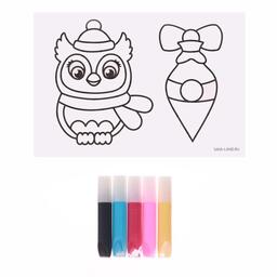 Сделать витражные картинки очень просто: наложите на трафарет плёнку, обведите его контурной краской. Немного подождите и заполните рисунок красками.