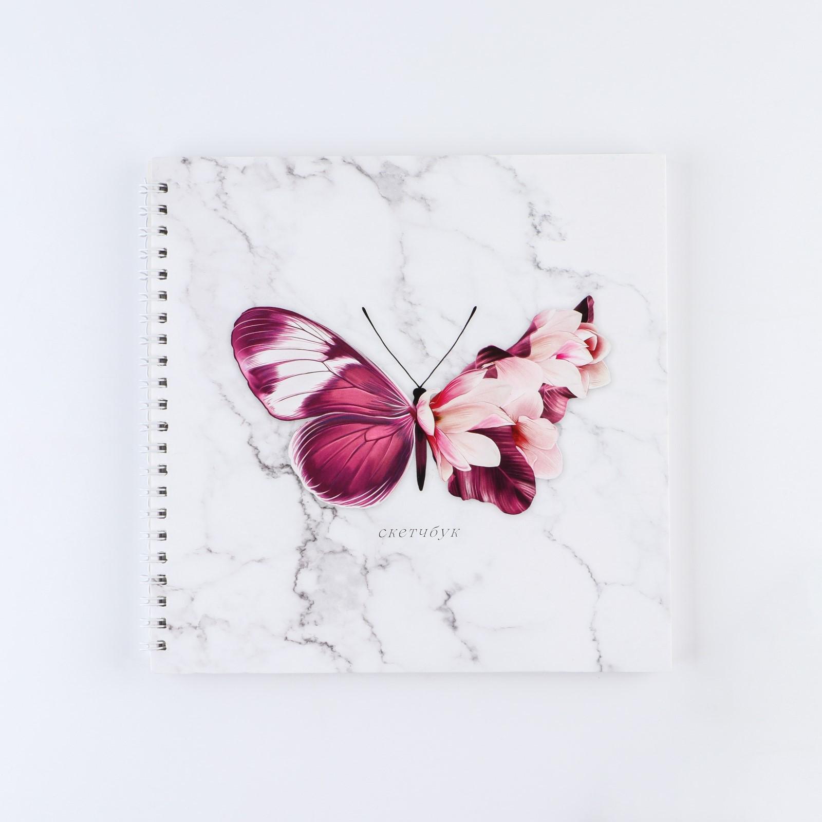 Скетчбук на гребне «Бабочка», 20х20см, 40 листов