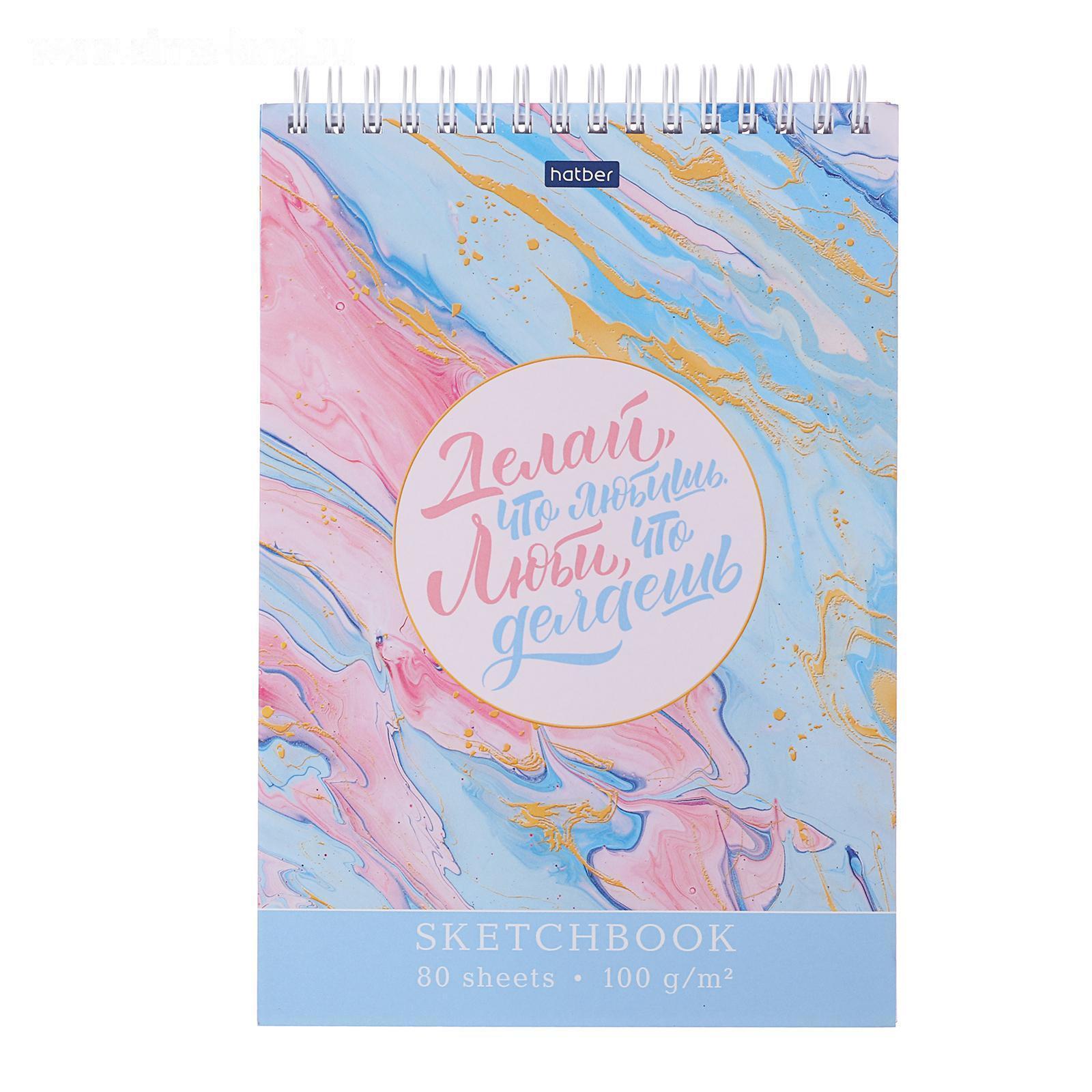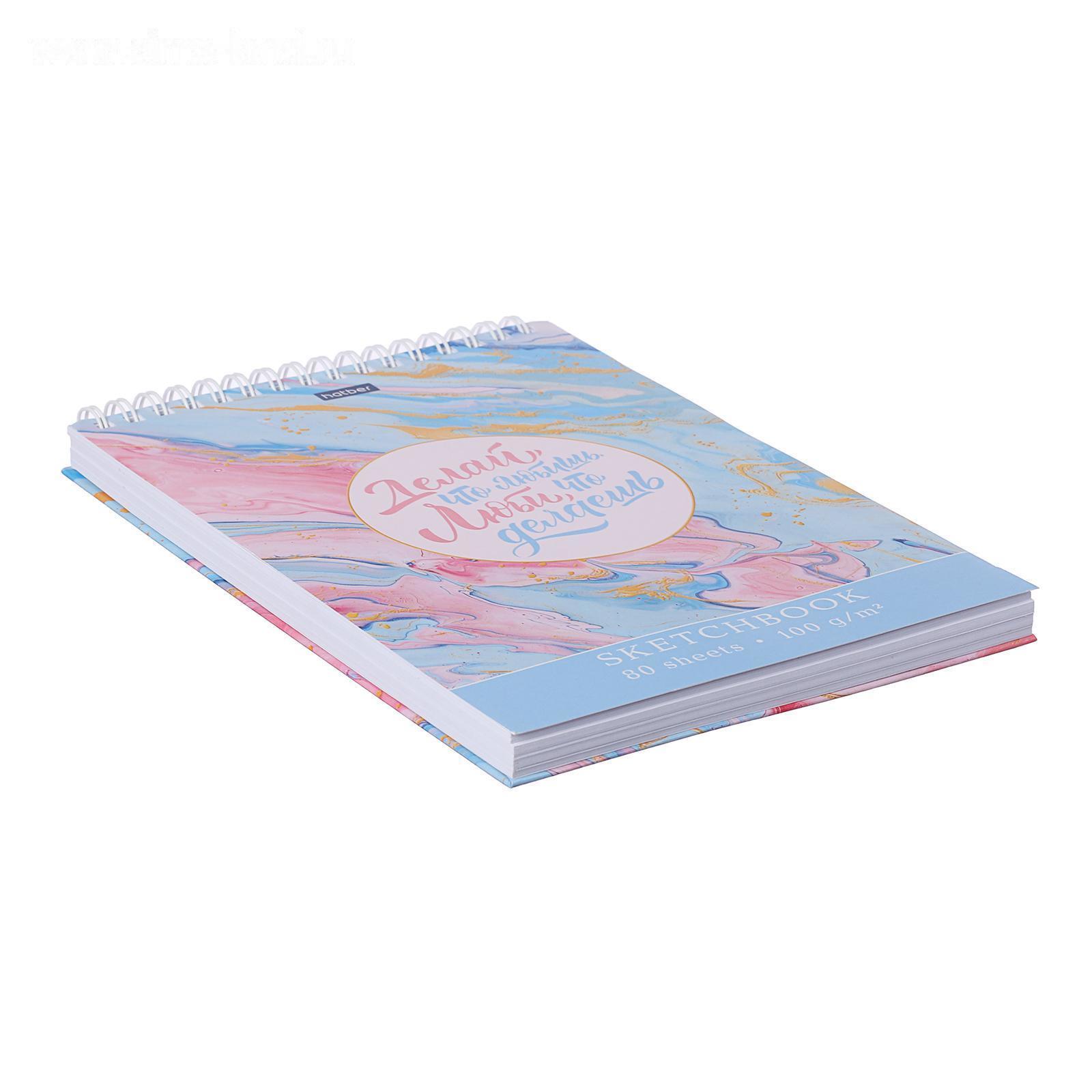 Скетчбук А5, 80 листов на гребне SketchBook "Мысли позитивно", картонная обложка, твёрдая подложка, блок 100 г/м2