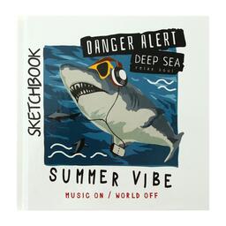 Скетчбук 15 х 15 см, 80 листов "Акула в наушниках", твёрдая обложка, глянцевая ламинация, блок 70 г/м²
