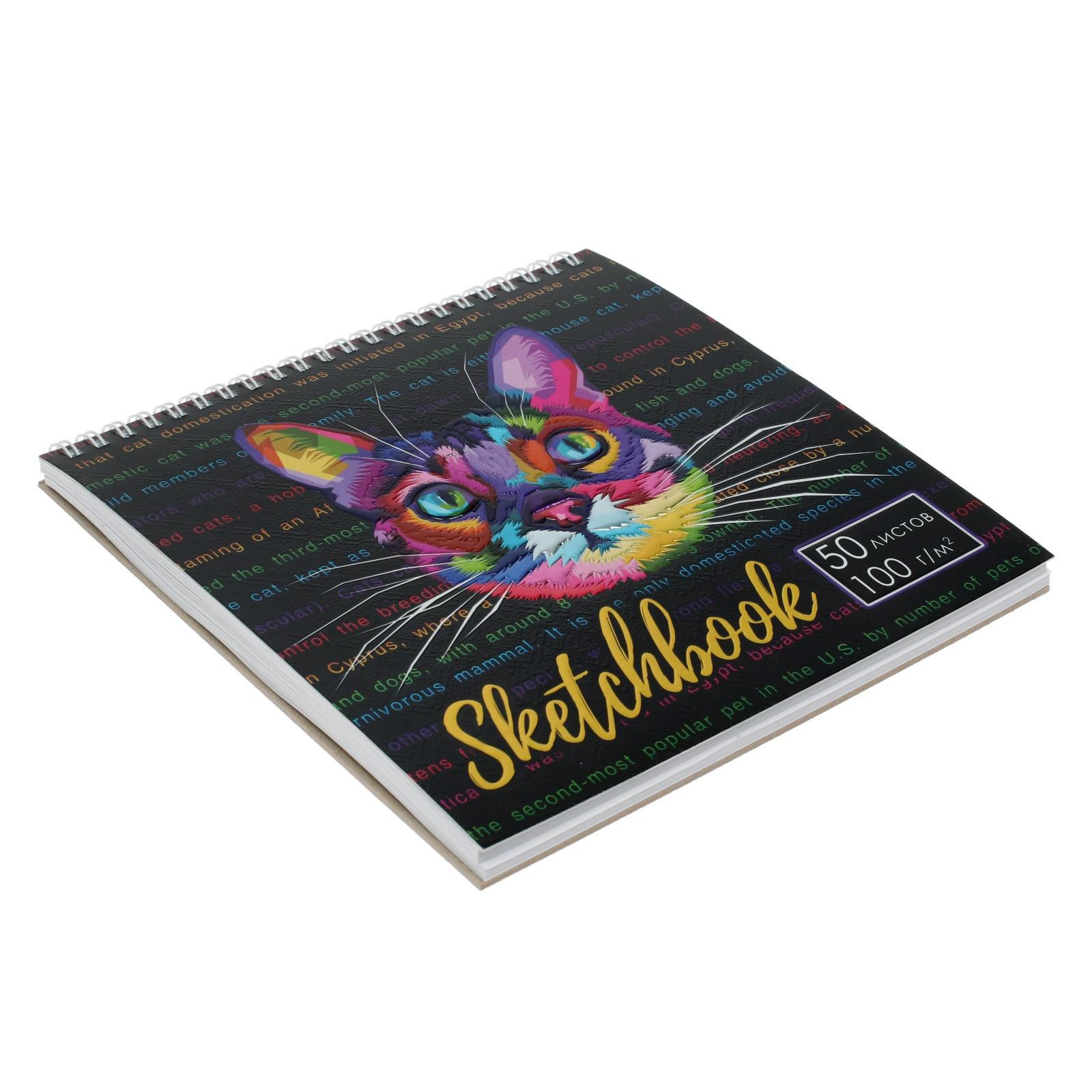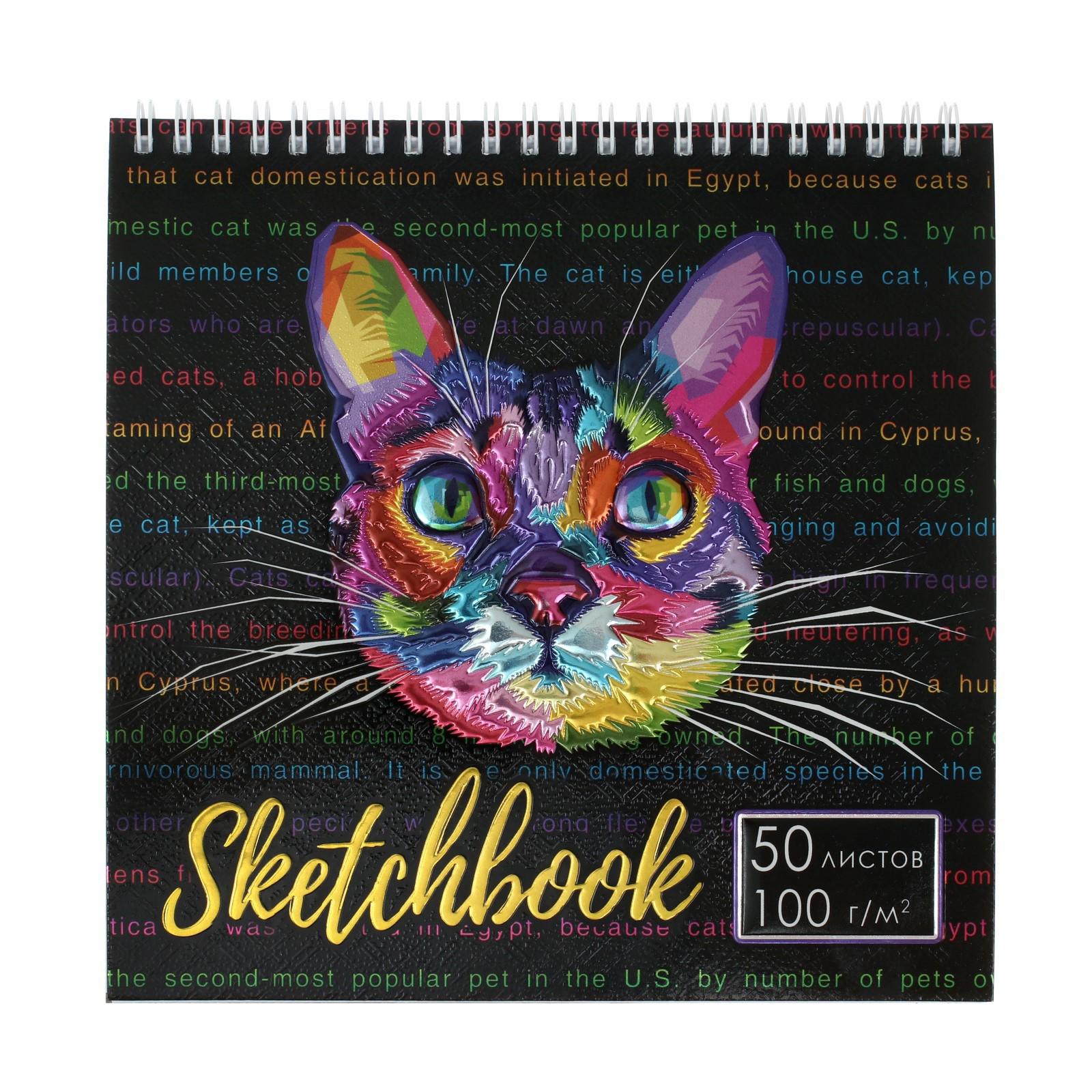 Скетчбук Calligrata, 195 х 195 мм, 50 листов, твёрдая обложка, "Кошка", металлизированный картон с объёмным рисунком, блок 100 г/м2