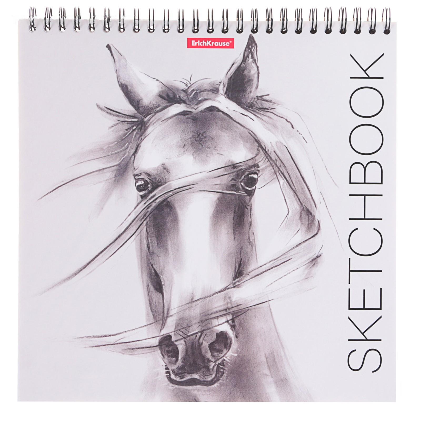 Альбом для эскизов 220 х 220 мм, 40 листов на гребне Wild Horse, обложка мелованный картон 190 г/м2, жёсткая подложка, блок 120 г/м2
