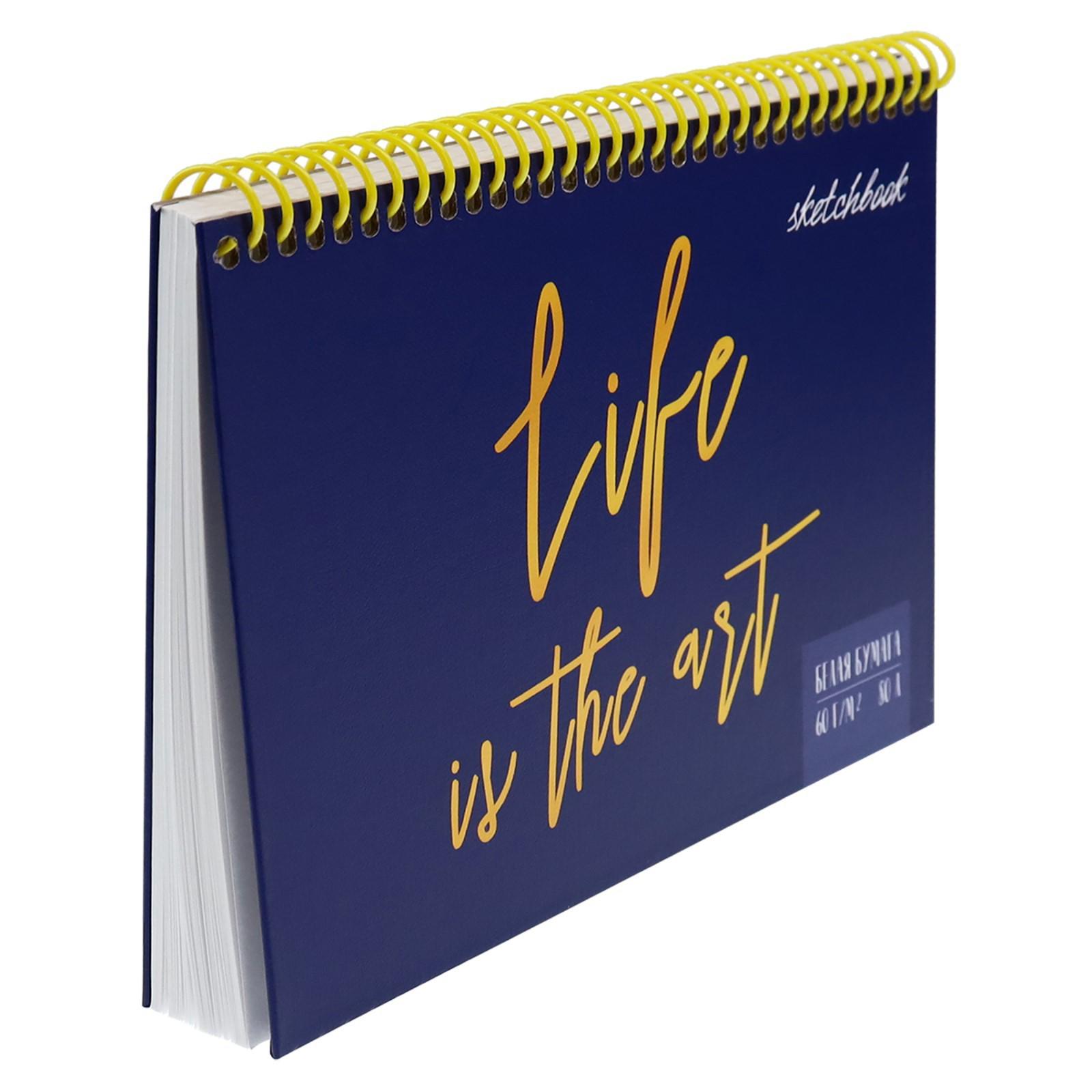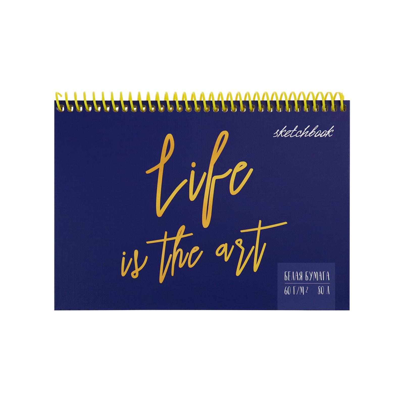 Скетчбук А5, 80 листов на гребне Life is the art, твёрдая обложка, матовая ламинация, лён, блок 60 г/м2