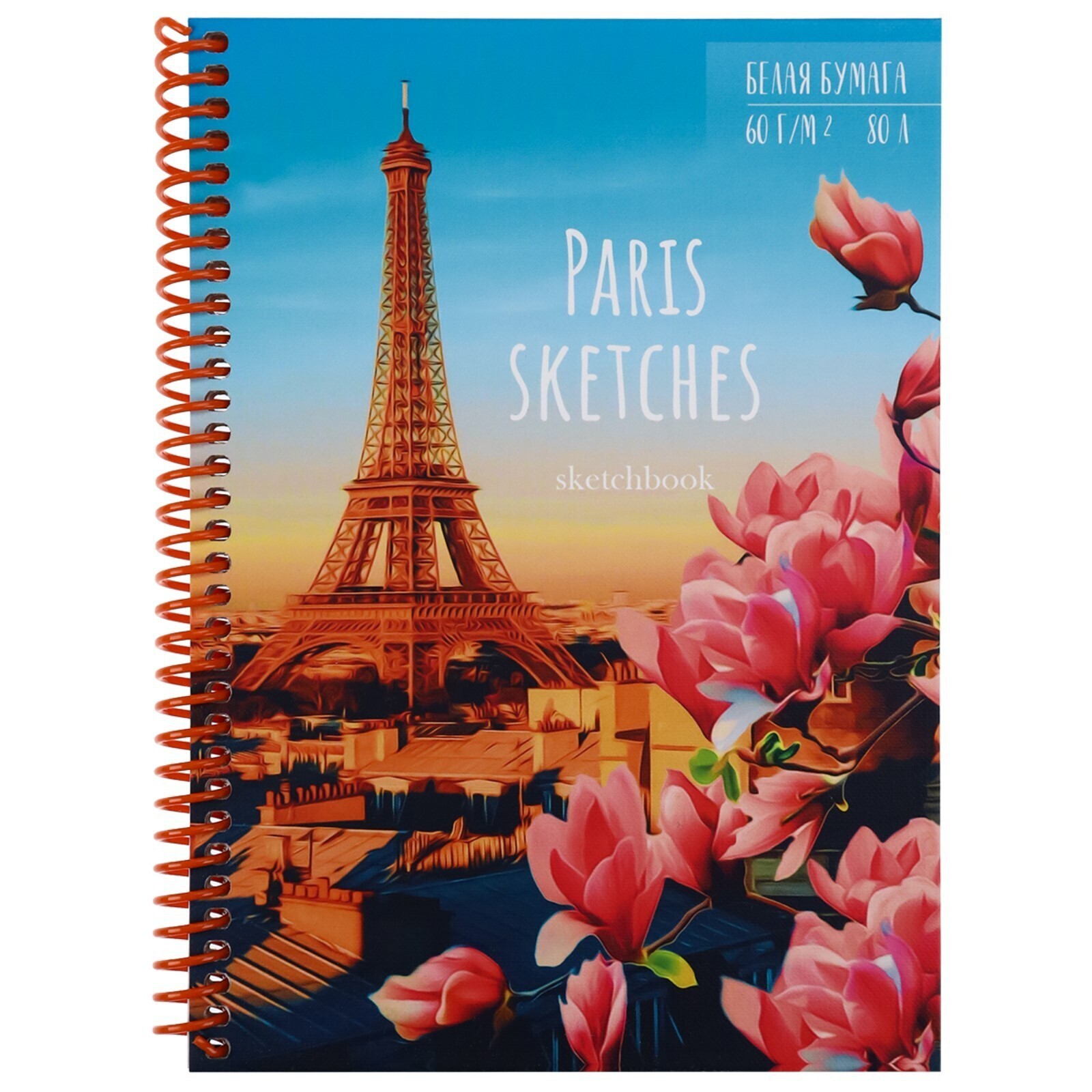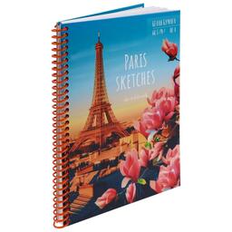Скетчбук А5, 80 листов на гребне "Париж", твёрдая обложка, матовая ламинация, лён, блок 60 г/м2