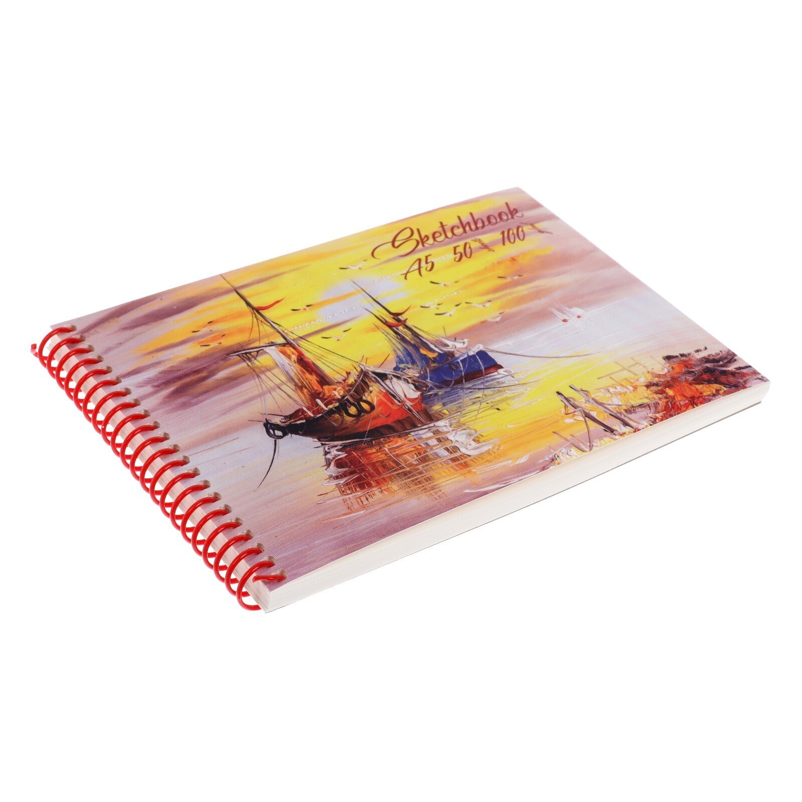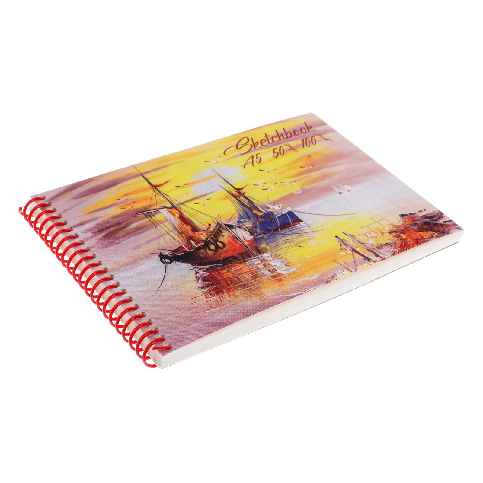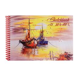 Скетчбук А5, 50 листов на гребне "Корабли", в твёрдой подложке, матовая ламинация, выборочный лак, блок 100 г/м²