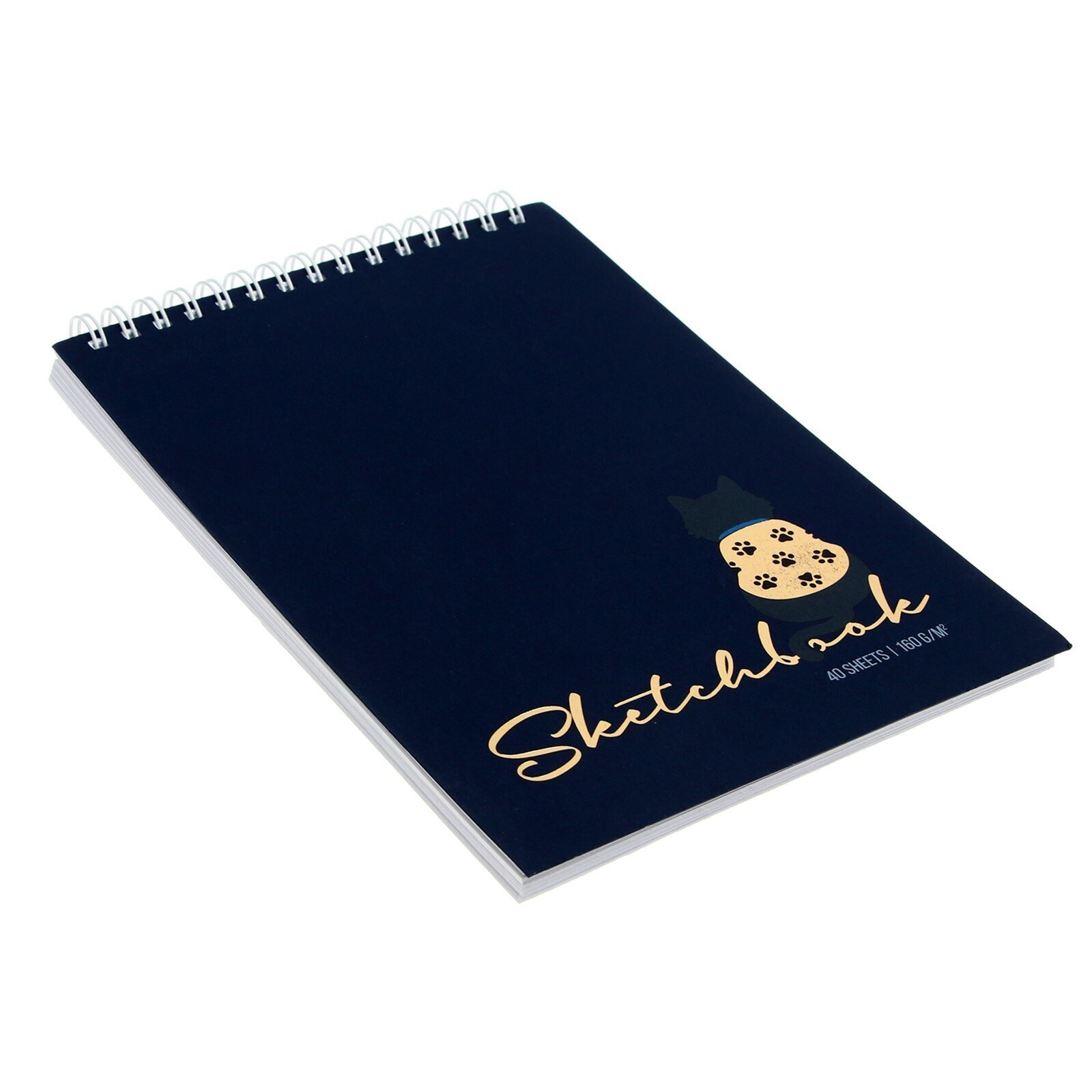 Скетчбук А5, 40 листов на гребне "Котик", обложка тонированный картон, жёсткая подложка, тиснение фольгой, блок 160 г/м²