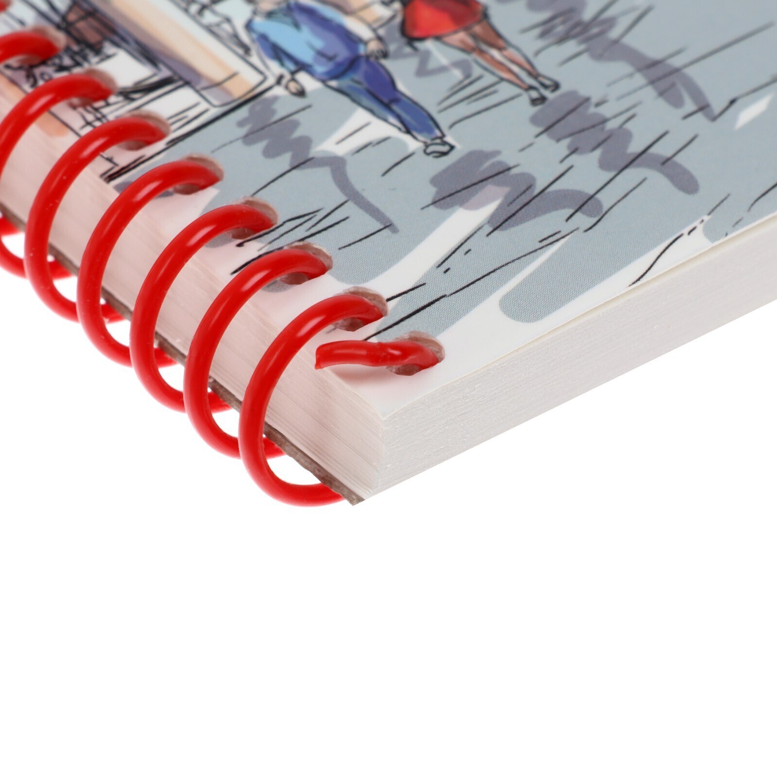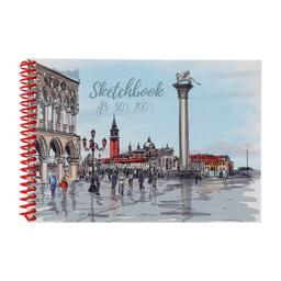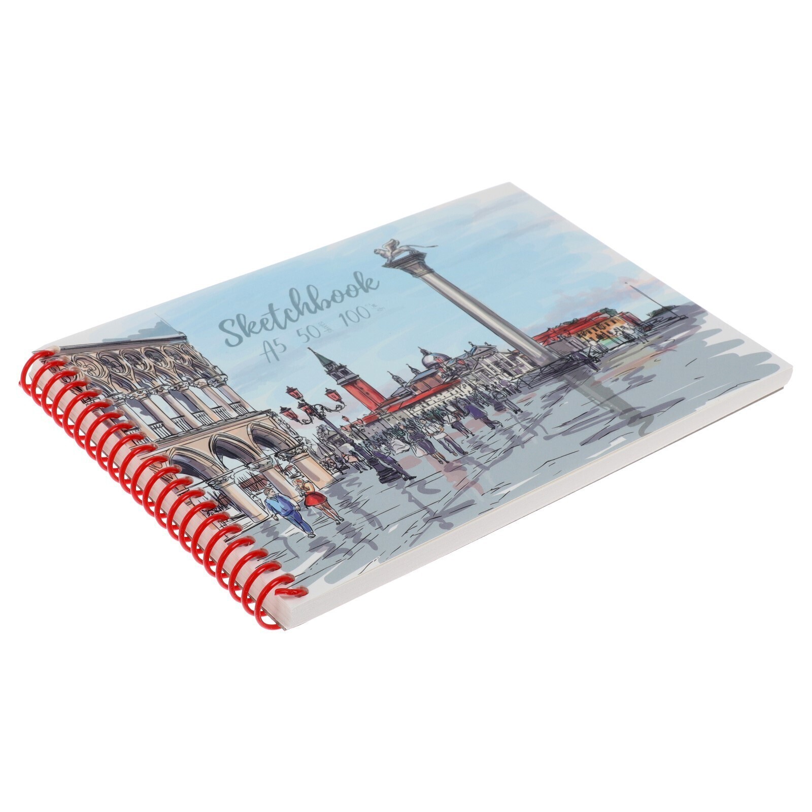 Скетчбук А5, 50 листов на гребне "Городская площадь", в твёрдой подложке, матовая ламинация, выборочный лак, блок 100 г/м²