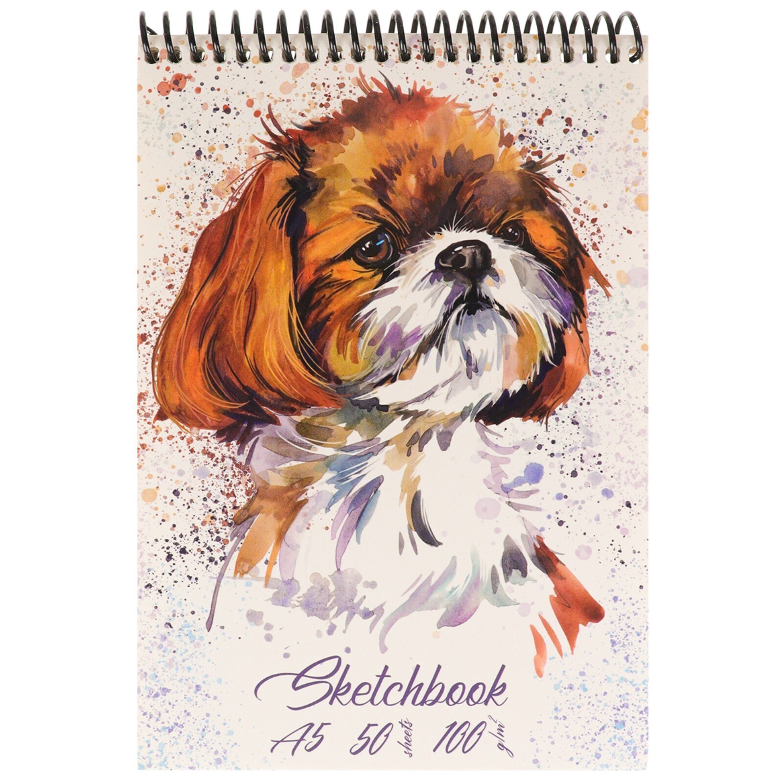 Скетчбук А5, 50 листов на гребне "Щенок", жёсткая подложка, матовая ламинация, выборочный лак, блок 100 г/м2