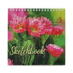 Скетчбук Calligrata, 170 х 170 мм, 50 листов, твёрдая обложка, "Кактусы", металлизированный картон с объёмным рисунком, блок 100 г/м2