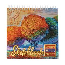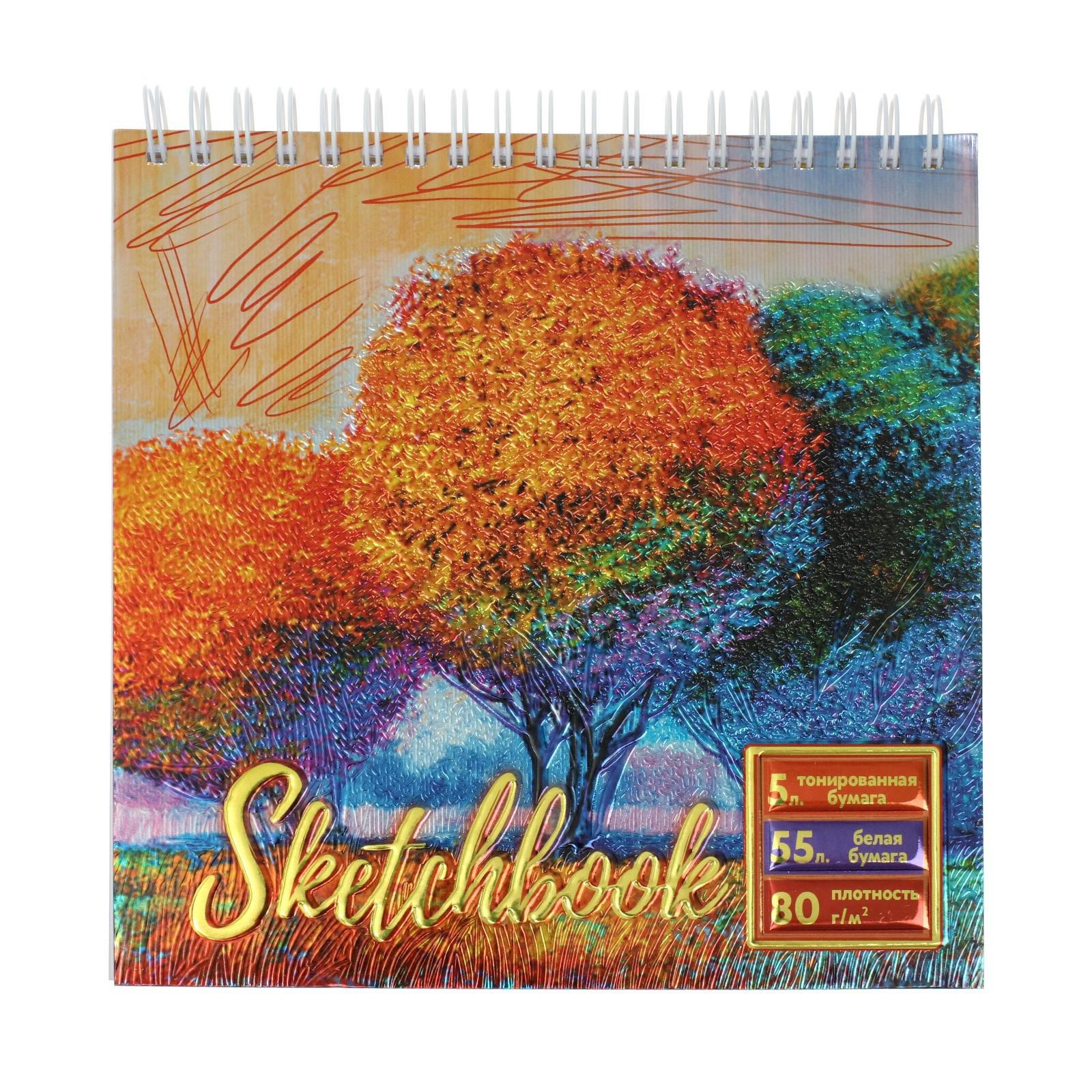 Скетчбук Calligrata, 170 х 170 мм, 55 листов, твёрдая обложка, "Сад", металлизированный картон с объёмным рисунком, блок 80 г/м2 + 5 листов тонированной бумаги