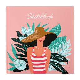 Скетчбук 15 х 15 см, 80 листов "Девушка в шляпе", твёрдая обложка, глянцевая ламинация, блок 70 г/м²