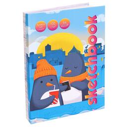 Скетчбук А6, 64 листа "Пингвины", твёрдая обложка, матовая ламинация, лён, блок 100 г/м2
