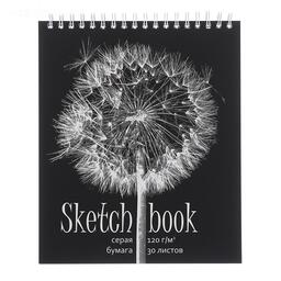 Скетчбук А5, 30 листов на гребне "Одуванчик", обложка мелованный картон, жёсткая подложка, тиснение фольгой, выборочный УФ-лак, блок серая бумага 120 г/м²
