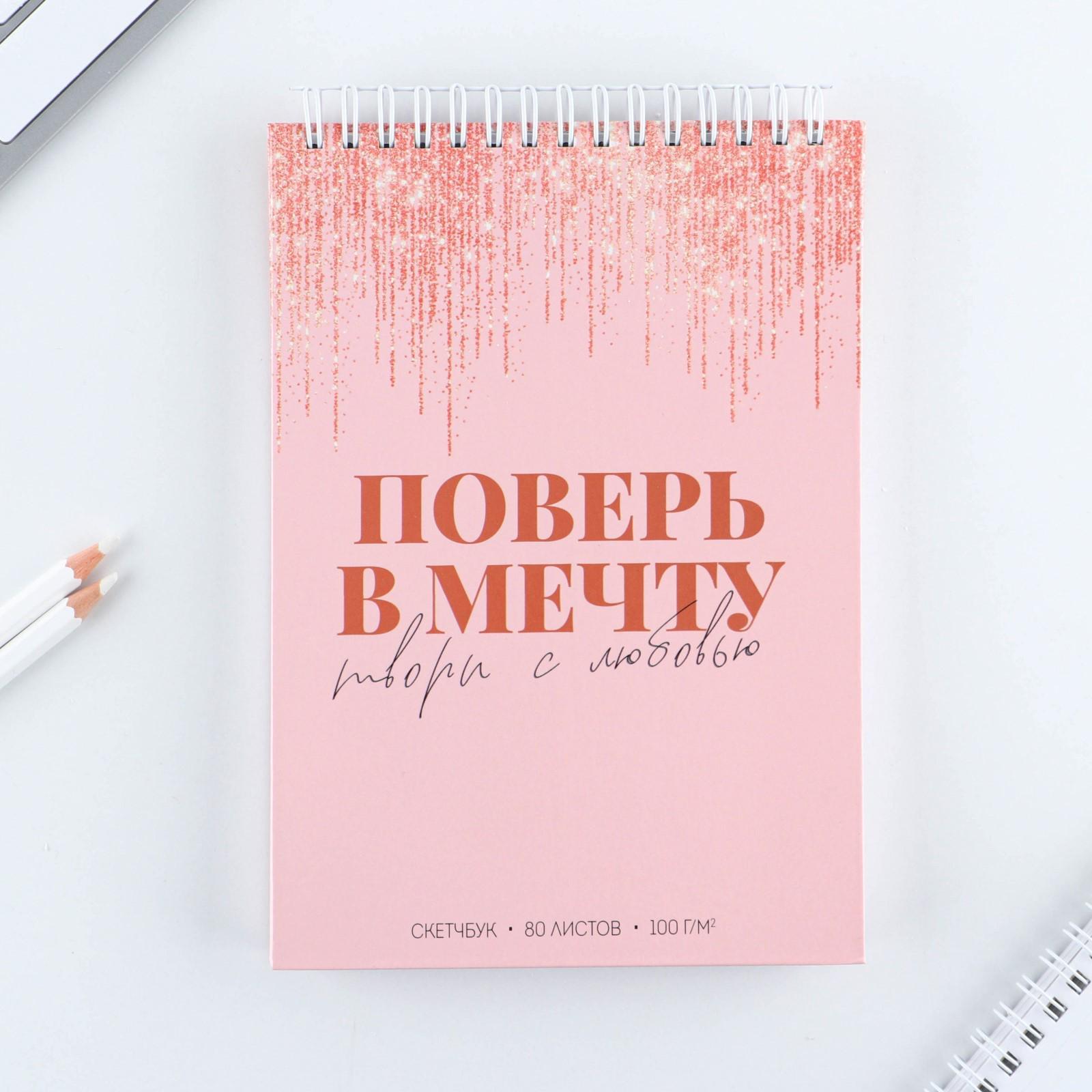 Скетчбук на гребне "Поверь в мечту" А5 80 л 100 гр/м