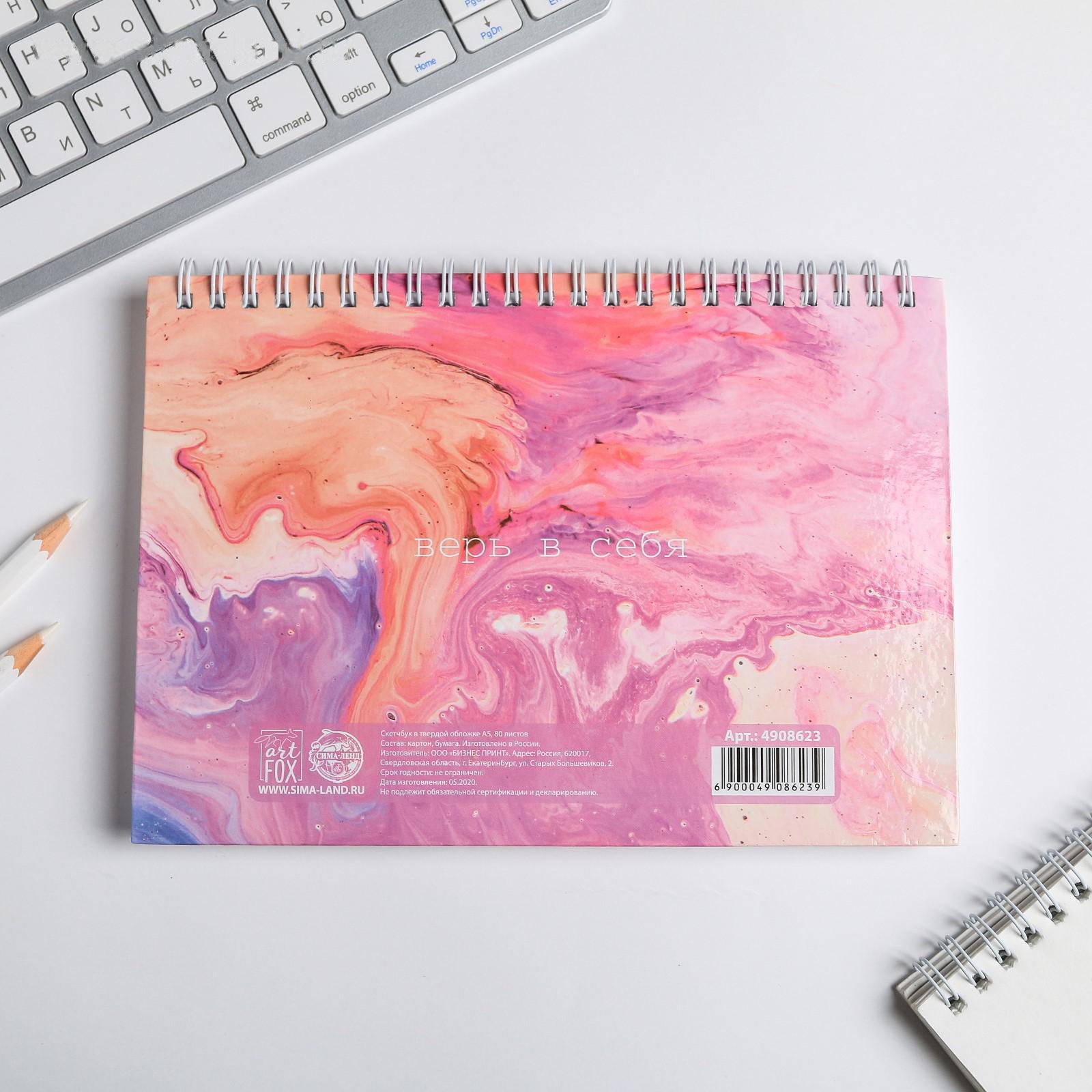 Скетчбук в твердой обложке на гребне «Мечты сбываются» А5, 80 л, 100 г/м