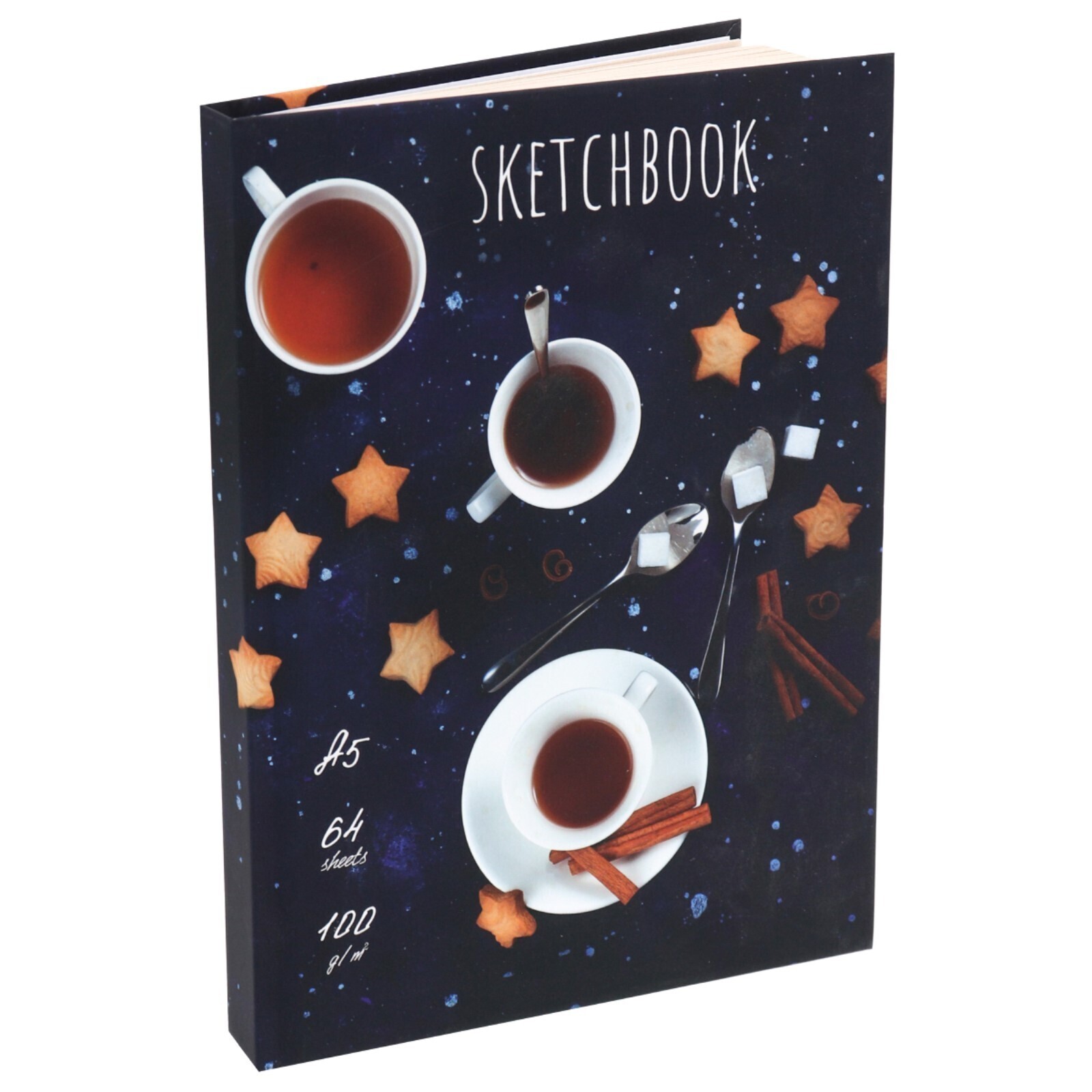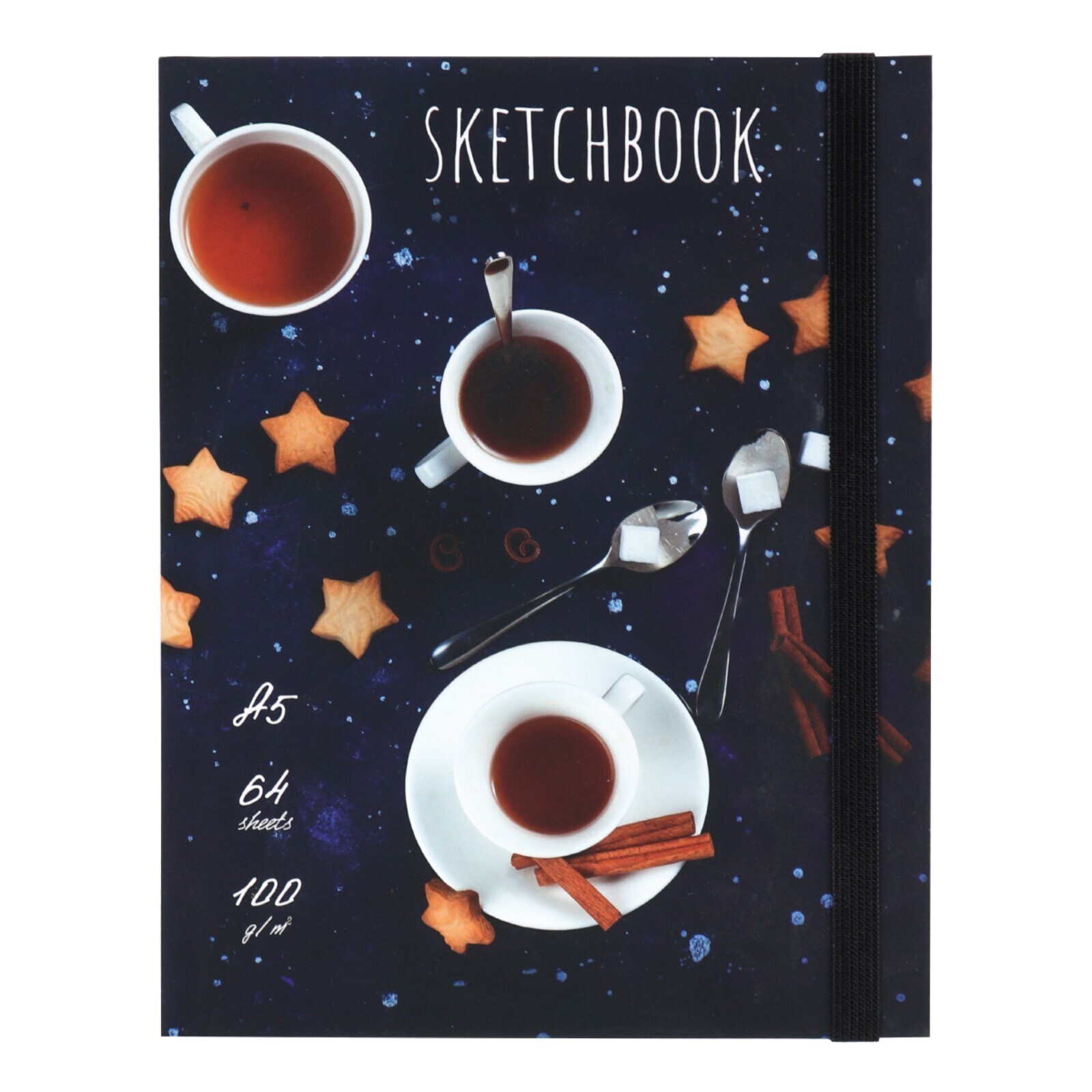 Скетчбук А5, 64 листа Tea time, твёрдая обложка, ламинация Soft-Touch, на резинке, блок крафт-бумага 100 г/м2