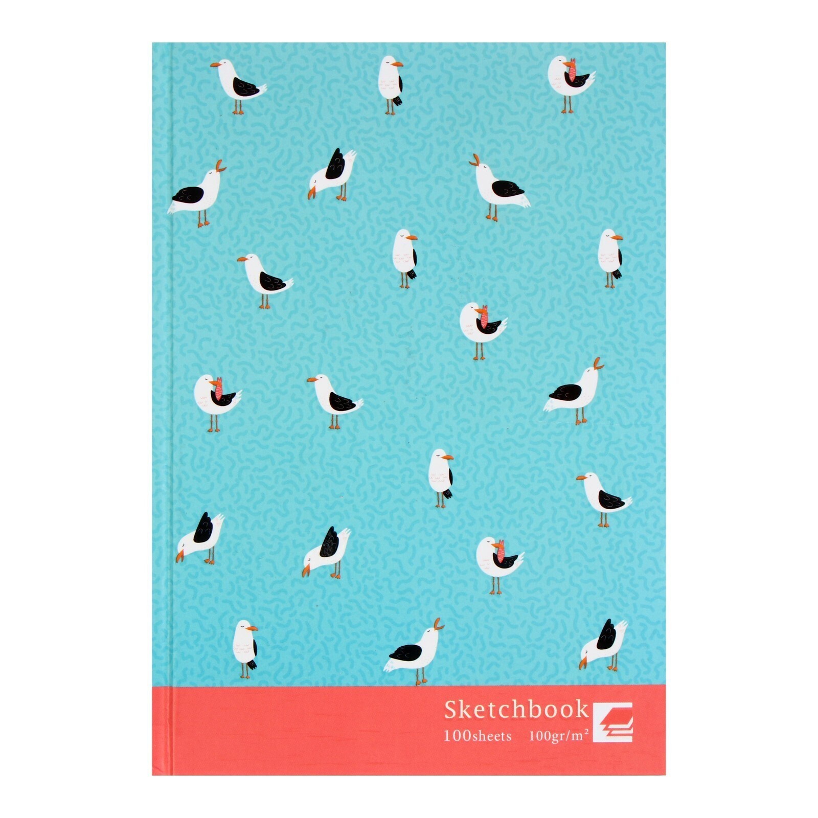 Скетчбук А5, 100 листов "Птицы", твёрдая обложка, матовая ламинация, выборочный лак, белый блок 100 г/м²