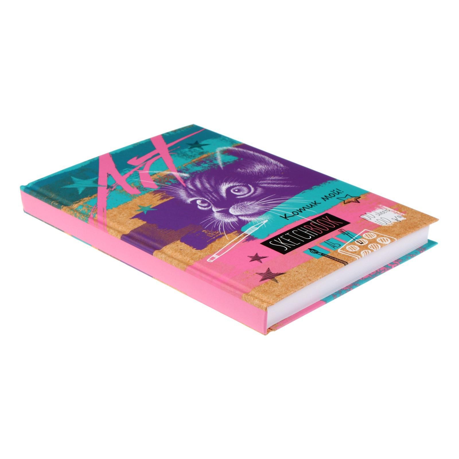 Скетчбук А5, 100 листов "Котик мой", твёрдая обложка, матовая ламинация, выборочный лак, блок офсет 100г/м²