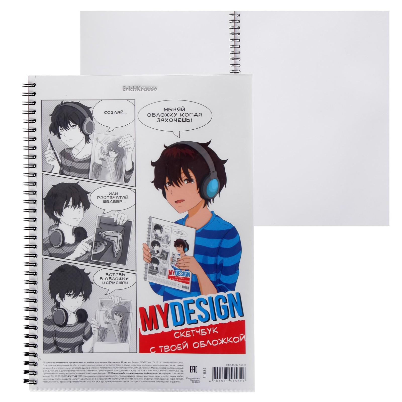 Альбом для эскизов А4, 40 листов на гребне ErichKrause MyDesign, пластиковая обложка, блок 120 г/м2