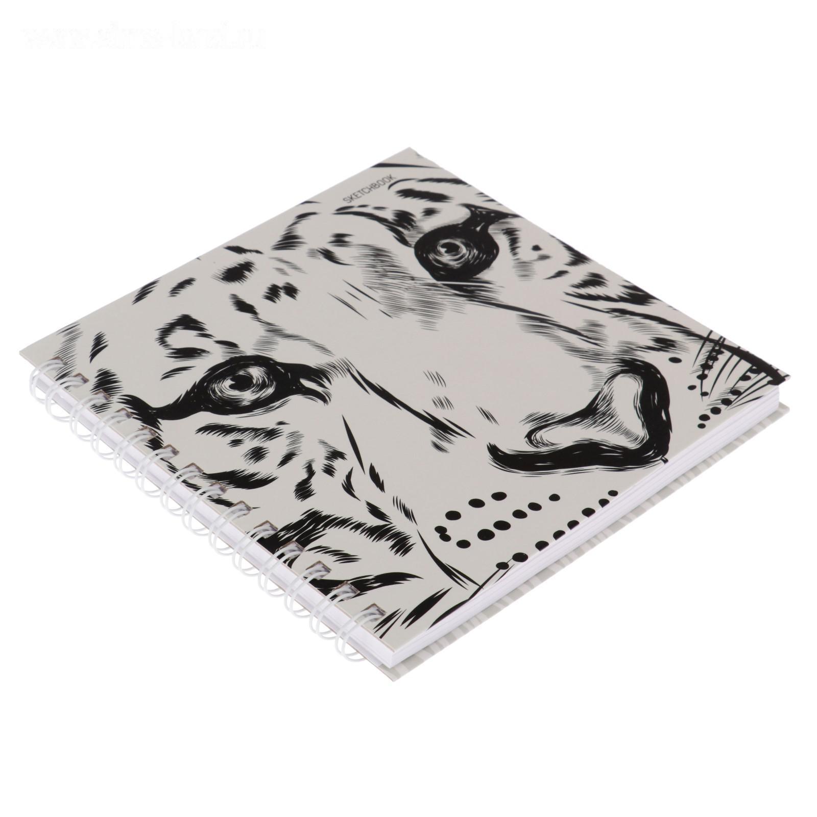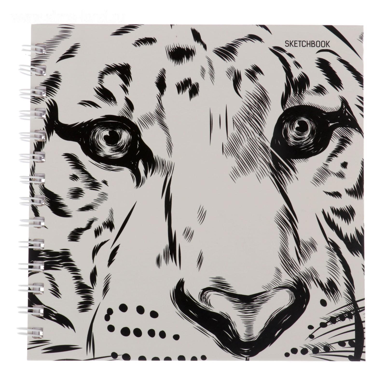 Скетчбук, квадрат 195 х 195 мм, 80 листов, на гребне, «Тигр», твёрдая обложка, матовая ламинация, блок 100 г/м²