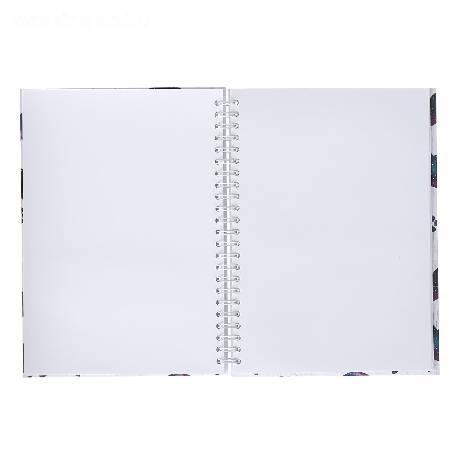 Блокнот-скетчбук А5+, 60 листов на гребне "Космические коты", твёрдая обложка, матовая ламинация, блок 100 г/м2