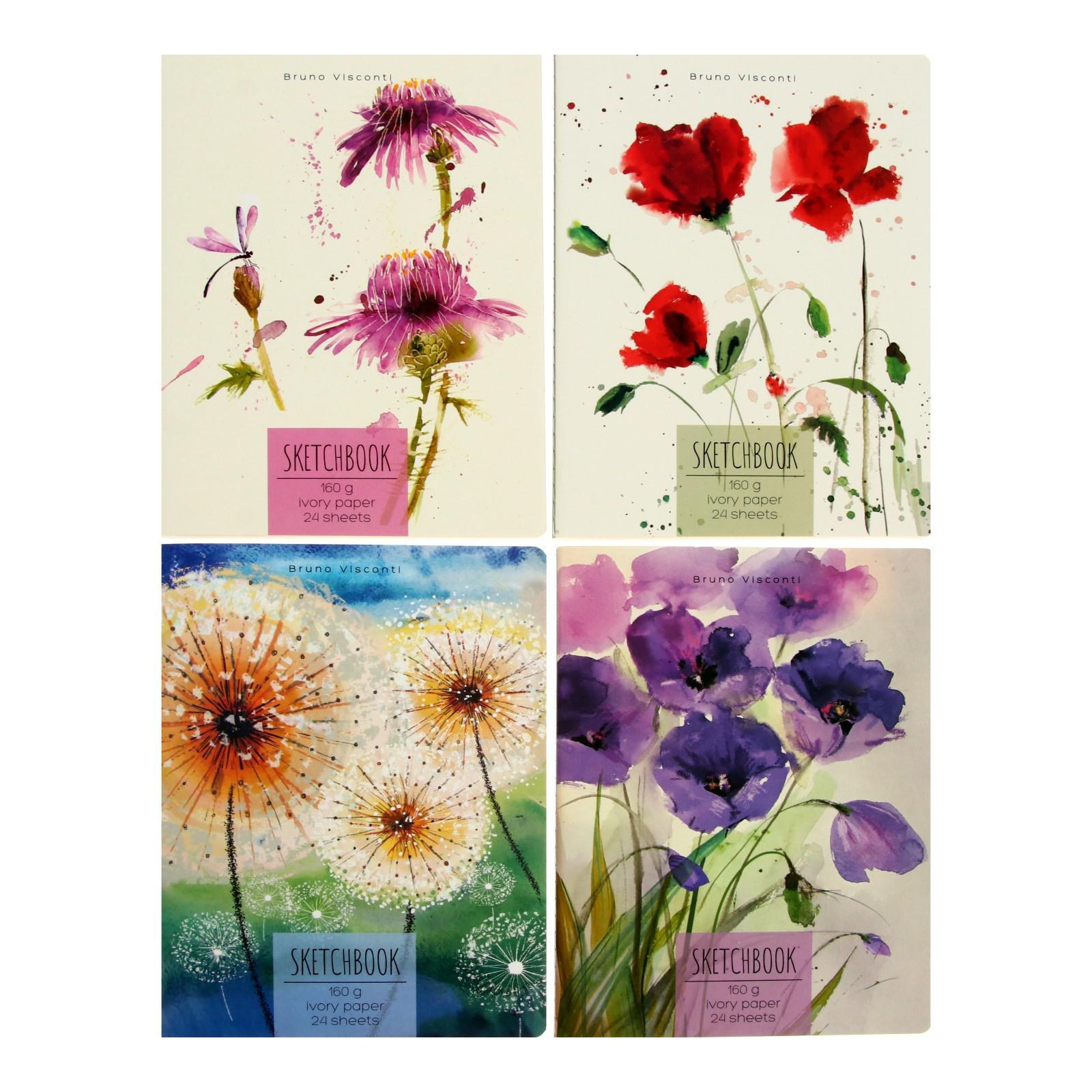 Скетчбук 188 х 259 мм, 24 листа прошитых, Bruno Visconti, бежевый блок 160 г/м2, МИКС