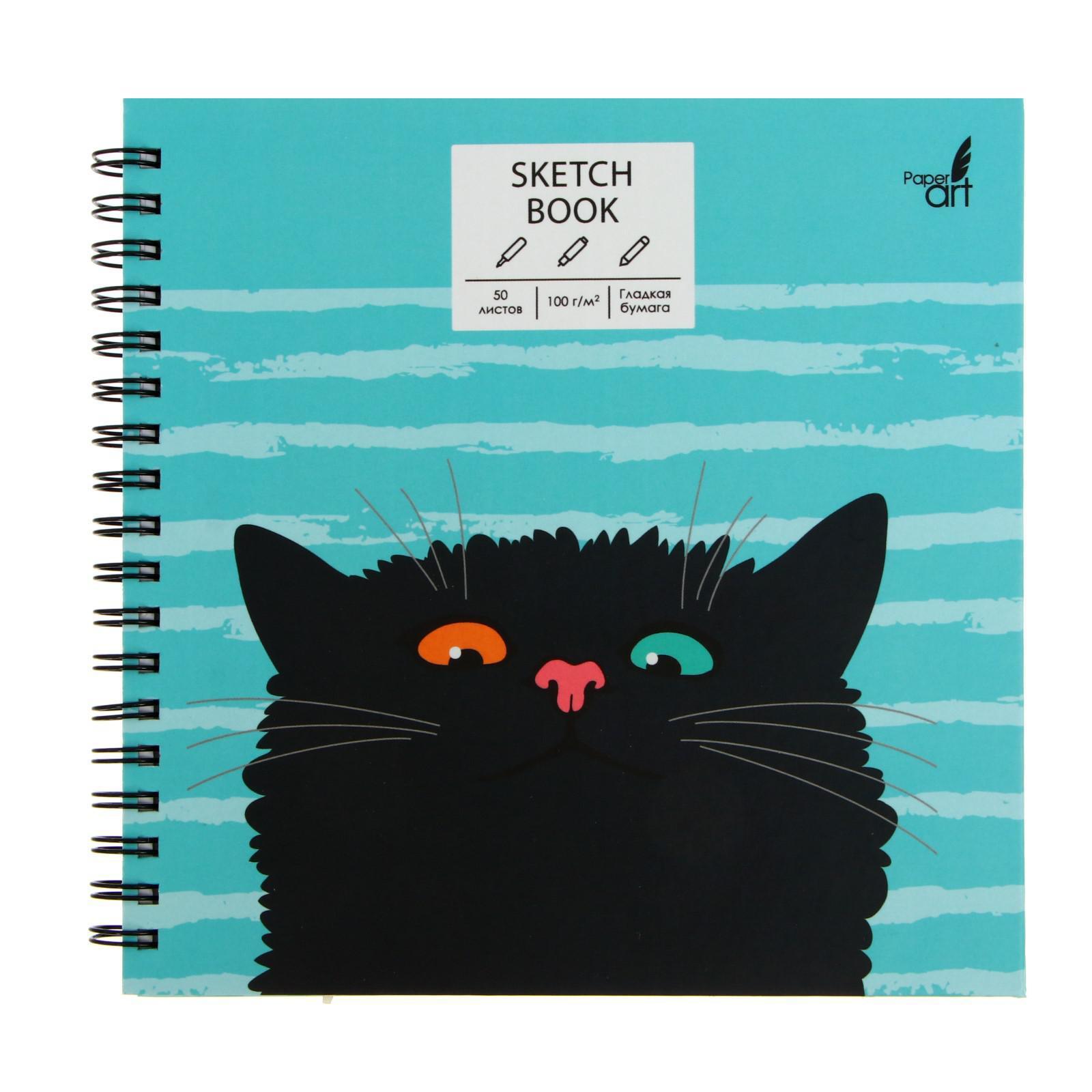 Скетчбук, 165 х 165 мм, 50 листов, "Любопытный кот", твёрдая обложка, матовая ламинация, блок 100 г/м²