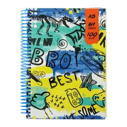 Скетчбук А5, 64 листа на гербне "Граффити", твёрдая обложка, глянцевая ламинация, блок 100 г/м2