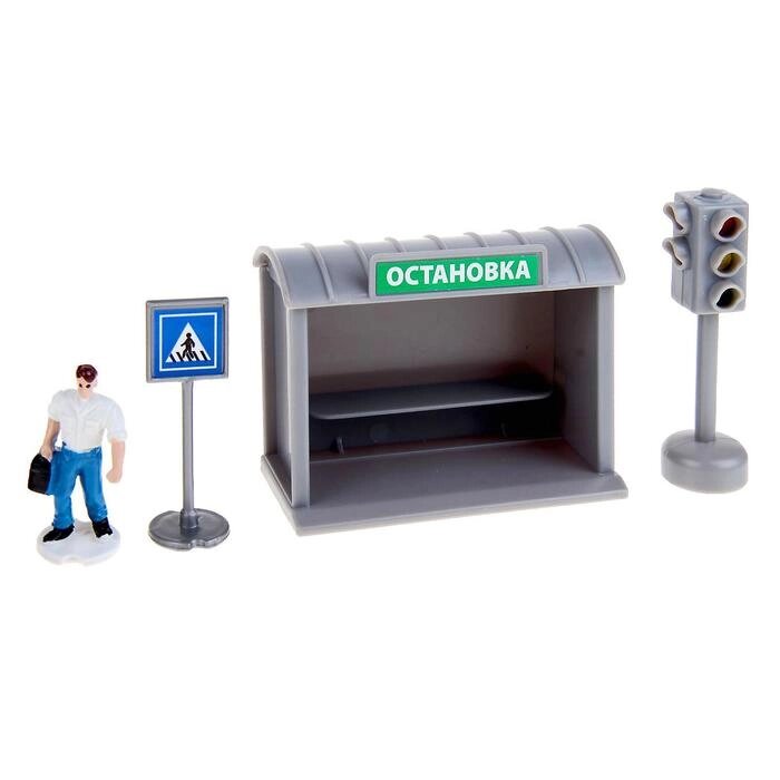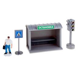 Набор металлических машин "Троллейбус с остановкой и аксессуарами", 12 см