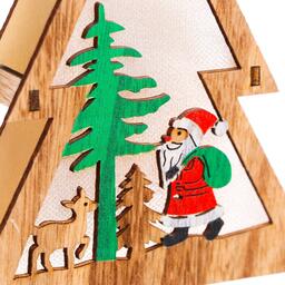 Изделие выполнено из экологичного материала — дерева и работает от батареек.