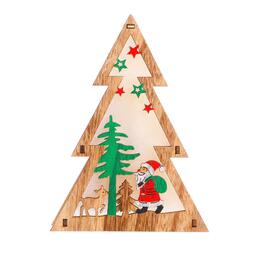 Новогодний световой декор настольный «Ёлка и дед мороз» 15×11×2 см