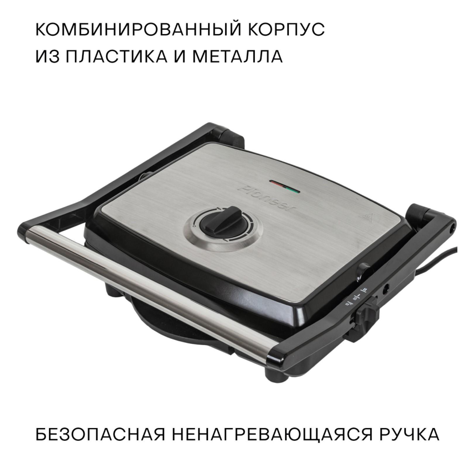 Гриль Pioneer GR1065E, 2200 Вт, антипригарное покрытие, серебристый