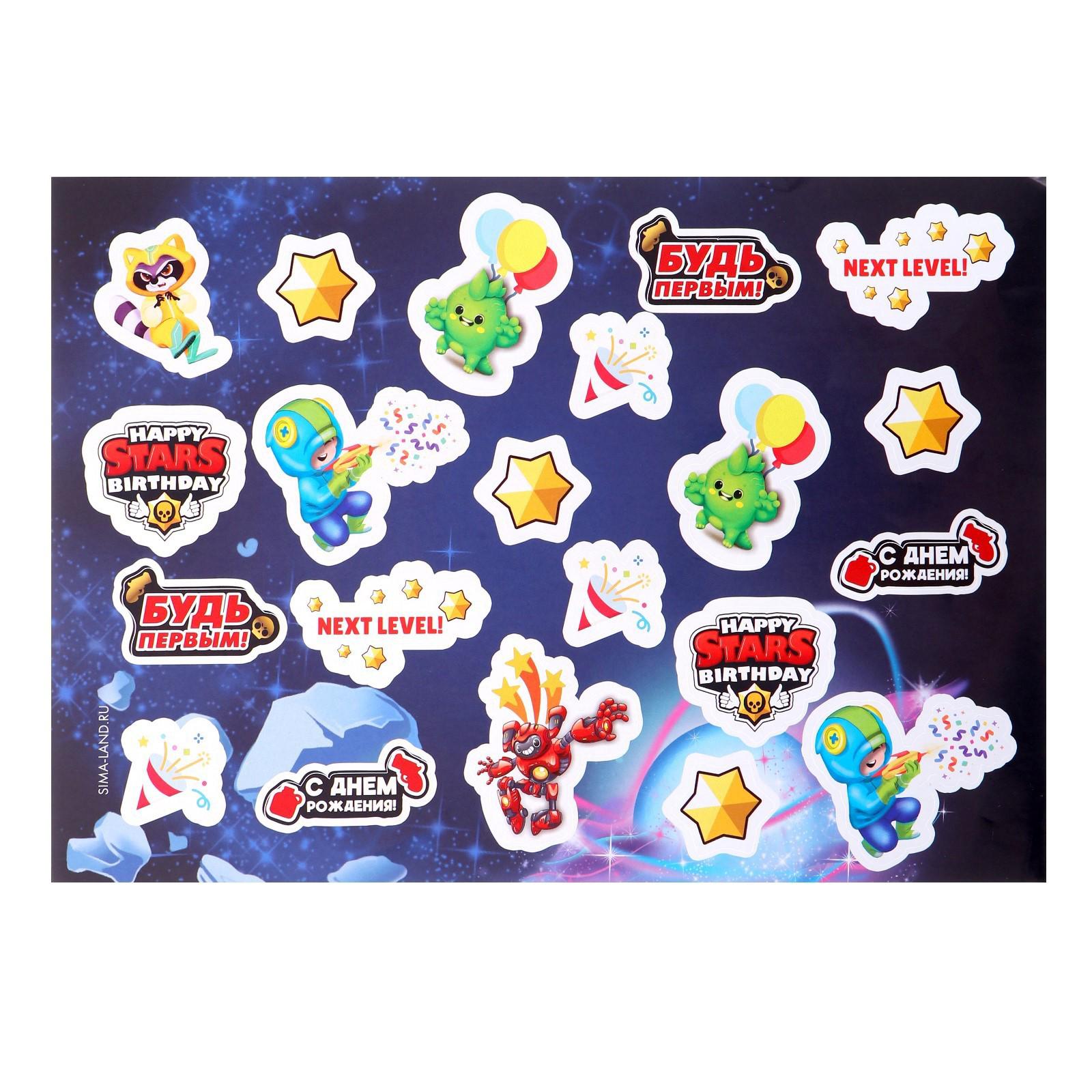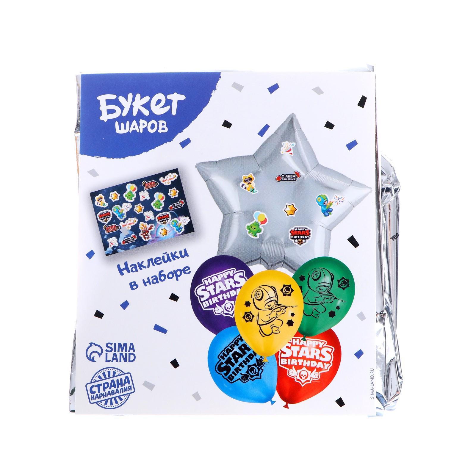 Букет из воздушных шаров С ДР. Happy stars, латекс, фольга, наклейки, набор 6 шт.