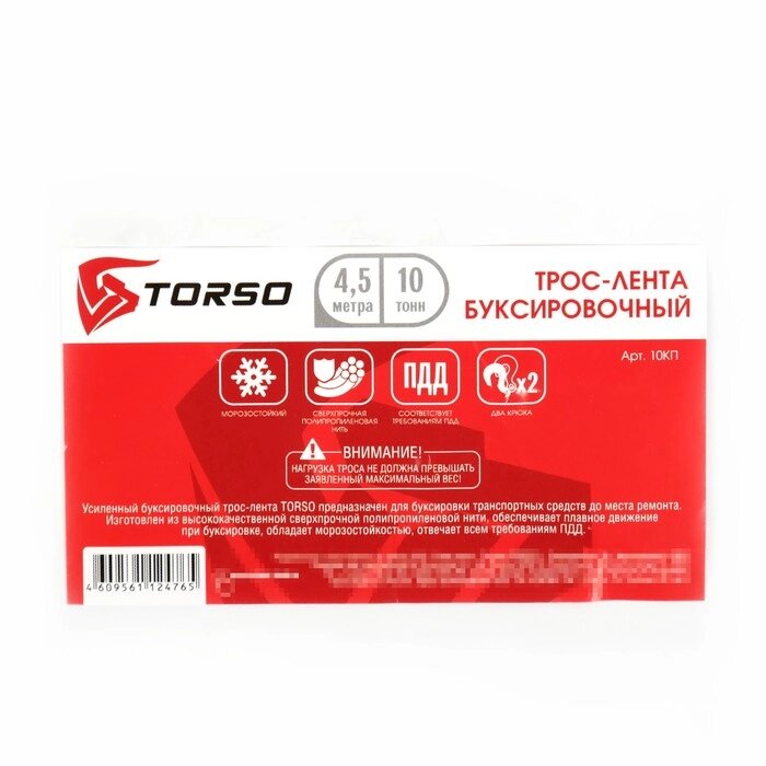 Трос-лента буксировочный TORSO Standart, 10 т. 4,5 м, 2 крюка